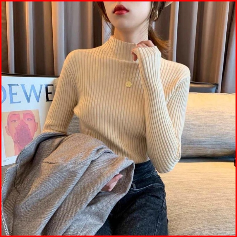 Turtleneck Daisy Rajut Knit Kerah Tinggi Atasan Korea Manset Lengan Panjang