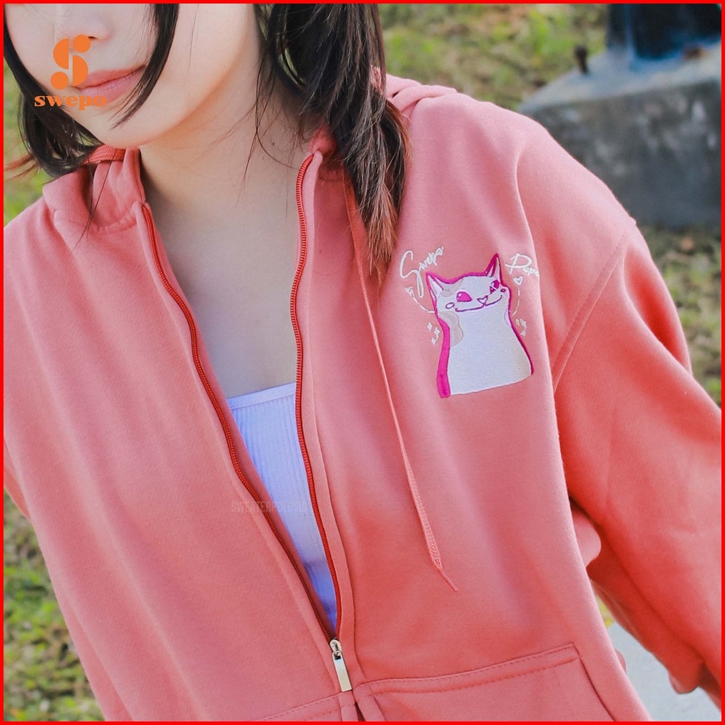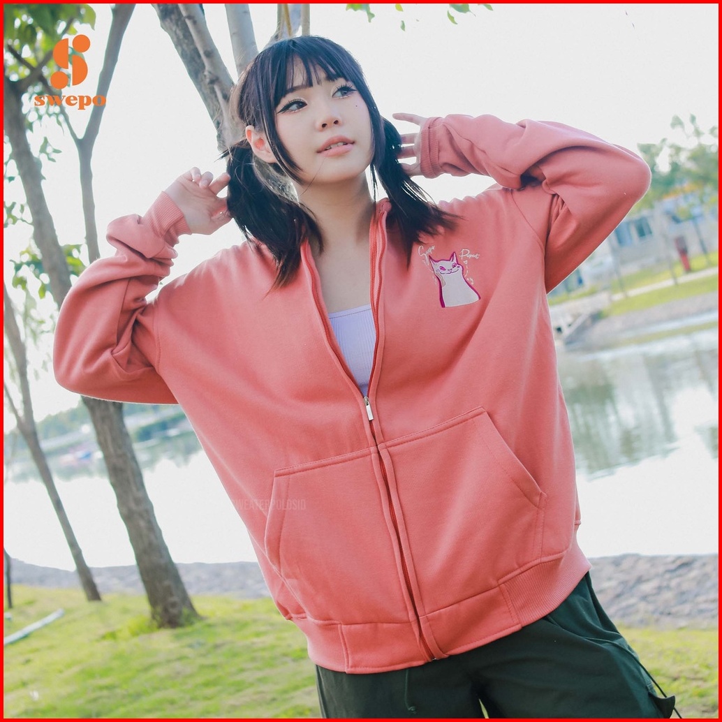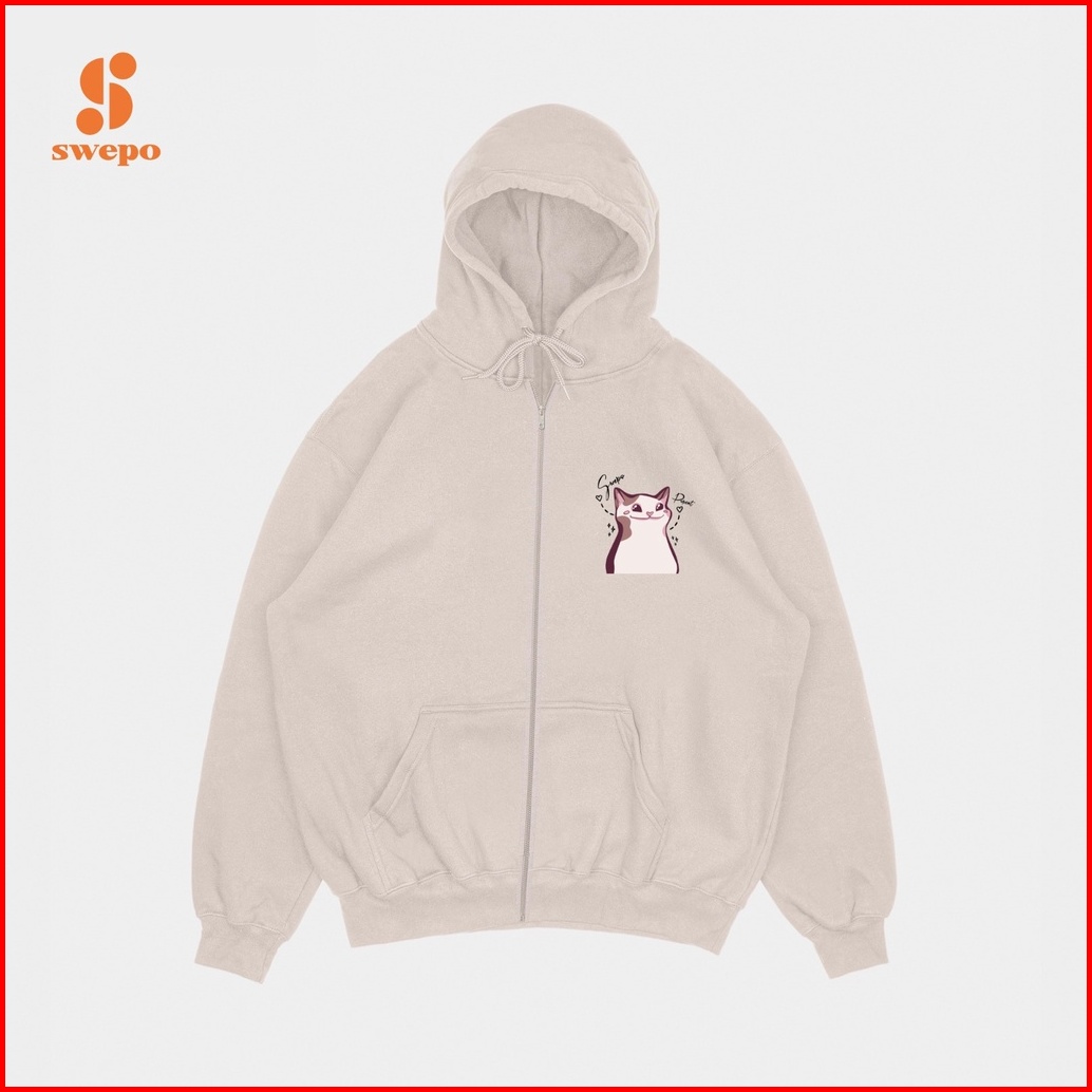 Swepo Hoodie Zipper Popcat Bordir Size M-xxl Pria Wanita