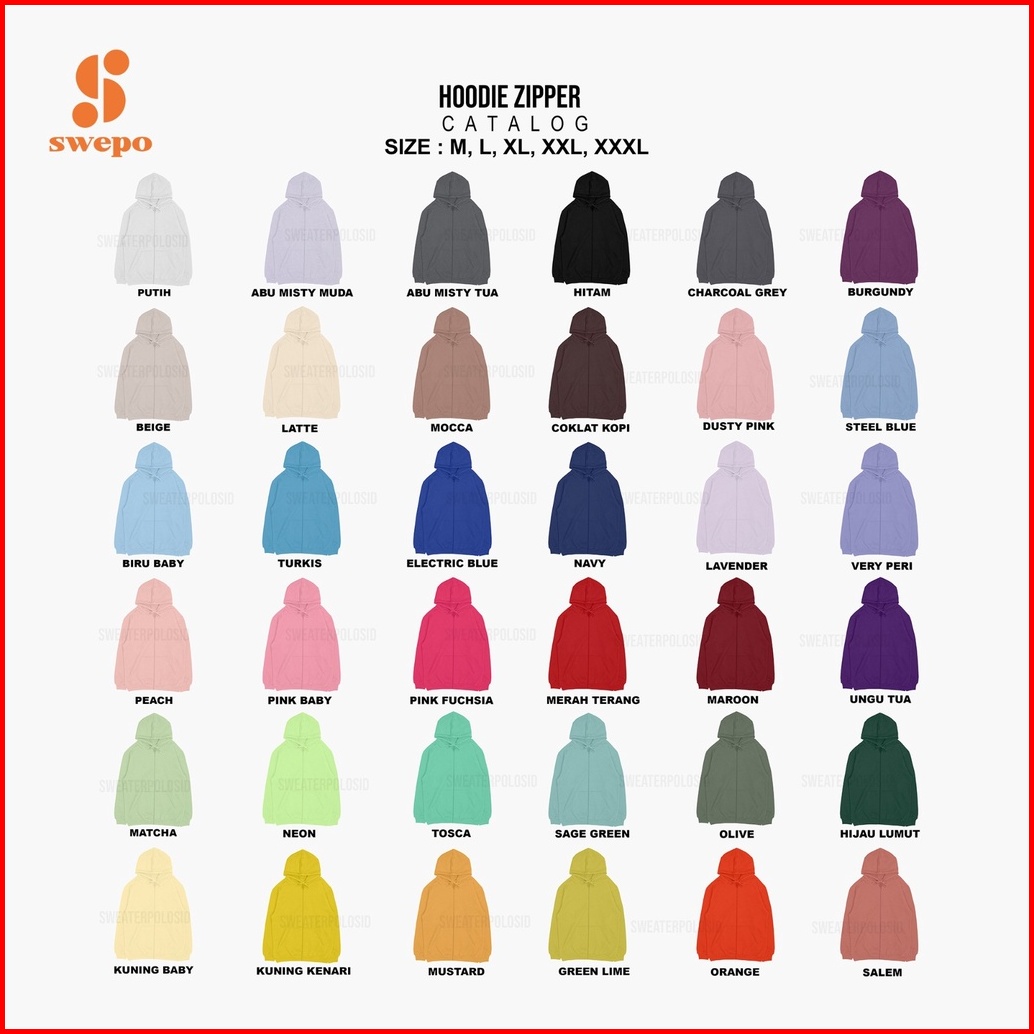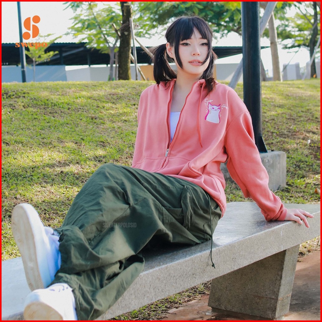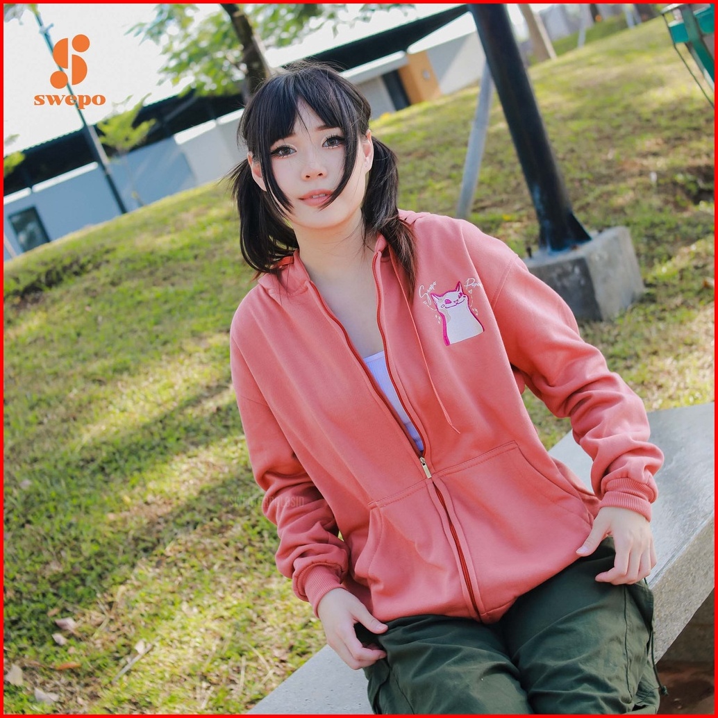 Swepo Hoodie Zipper Popcat Bordir Size M-xxl Pria Wanita