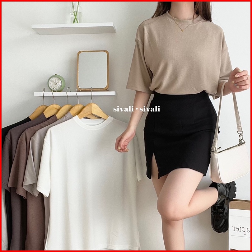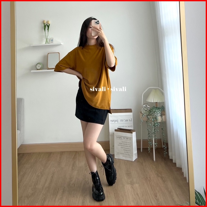 Sivali Oversize Basic Tee Oversized Korea T-shirt With Slit - Kaos Polos Unisex Premium 5300