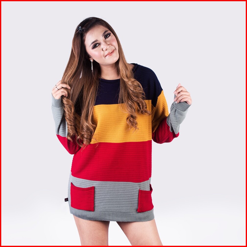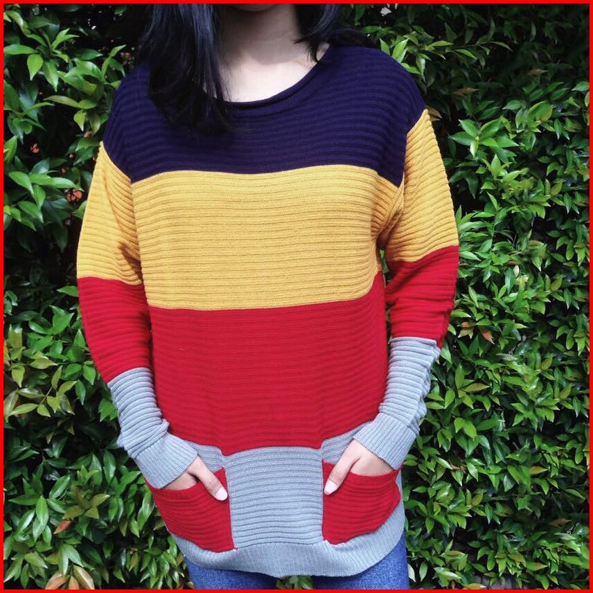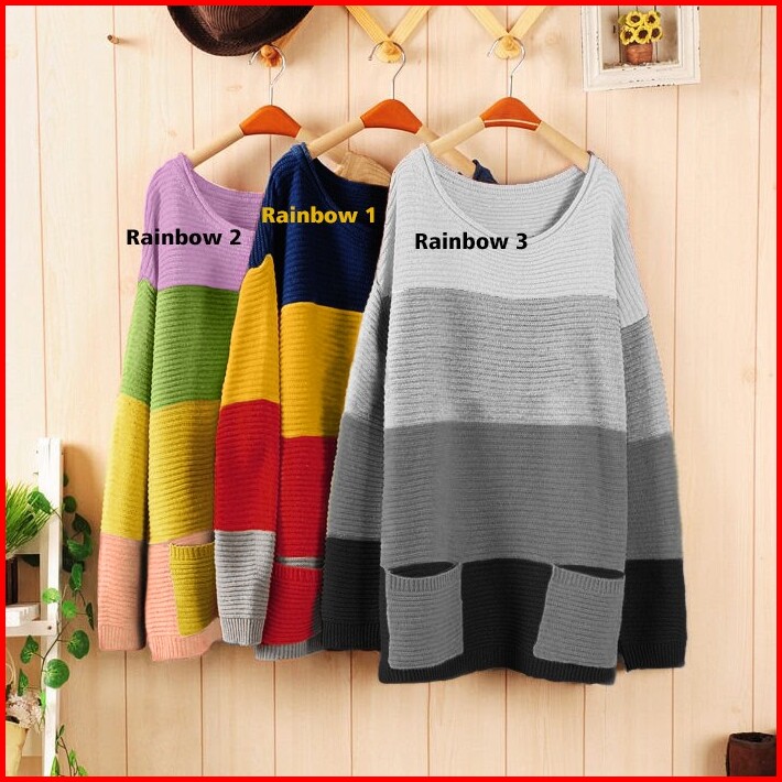 Rainbow Sweater Atasan Outer Rajut Wanita Boxy Pocky Loose Knitwear