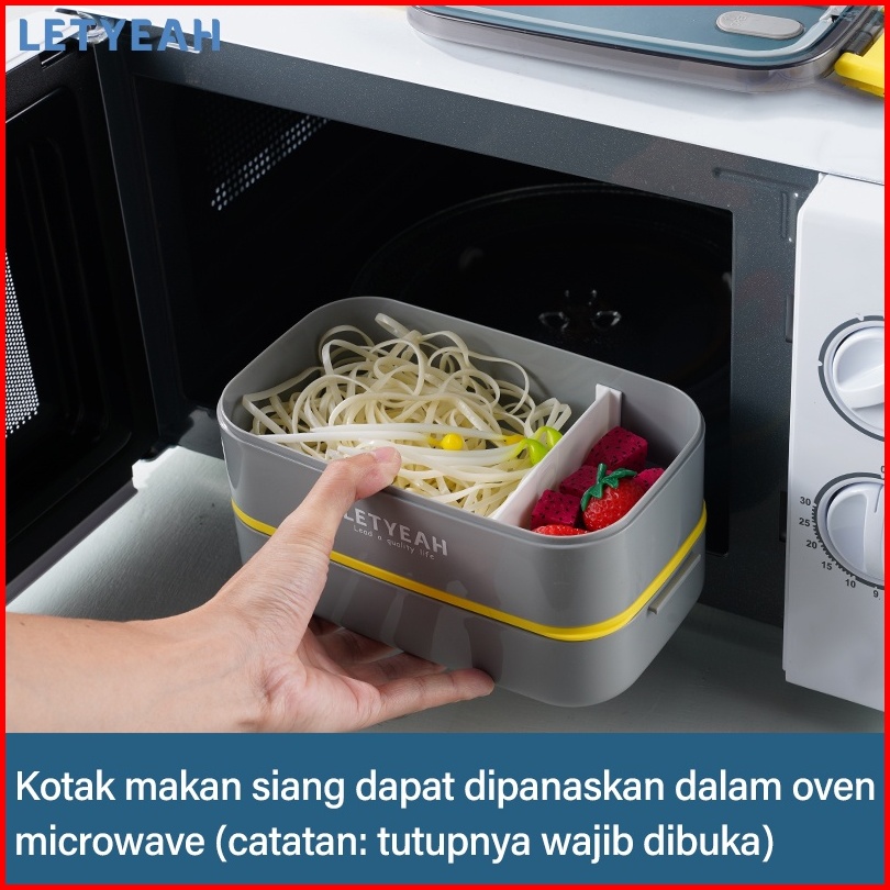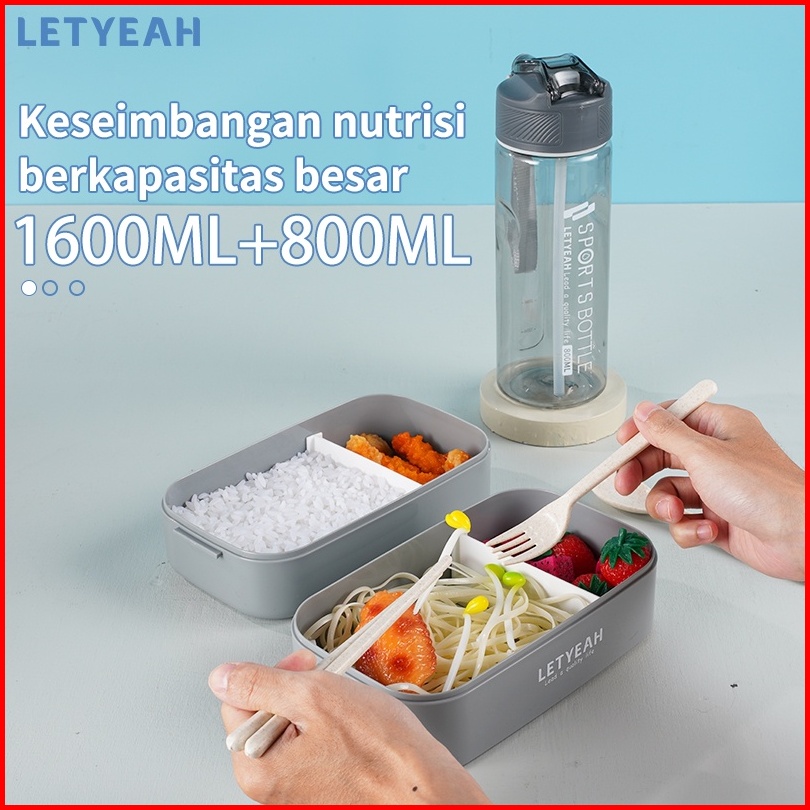Letyeah Kotak Makan Set Dengan Botol Minum 800ml Dan Tas Bekal 1600ml Lunch Box Anti Bocor Bpa Free