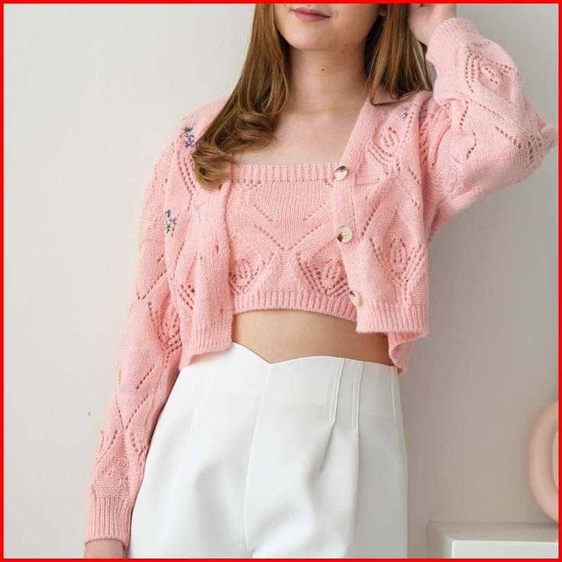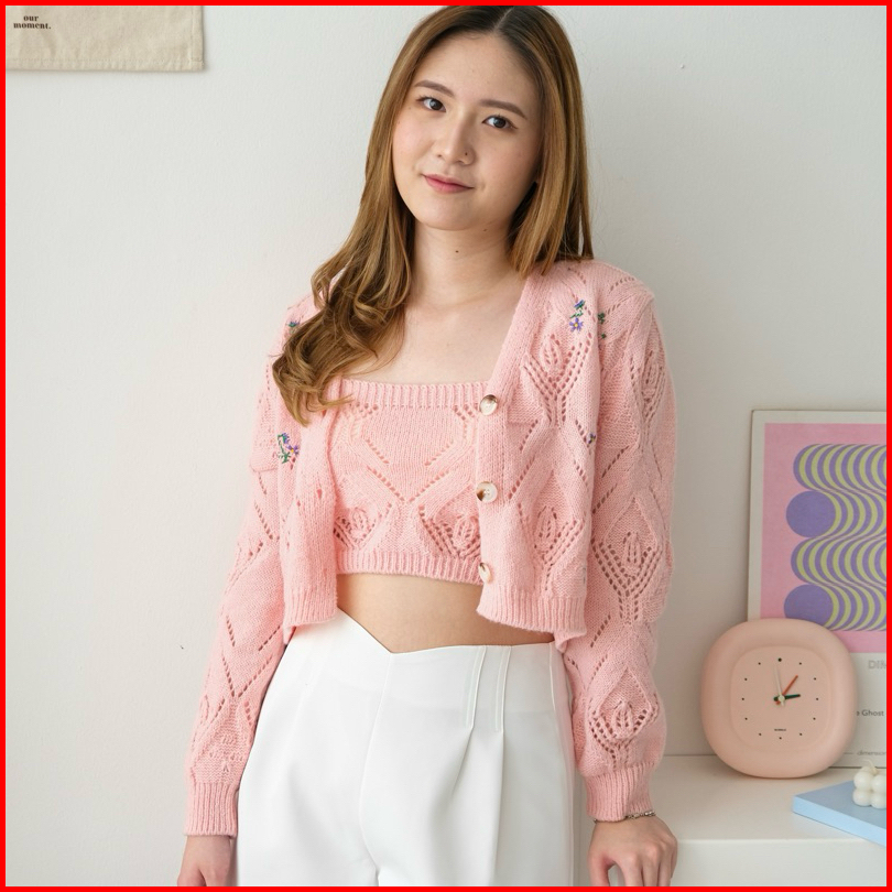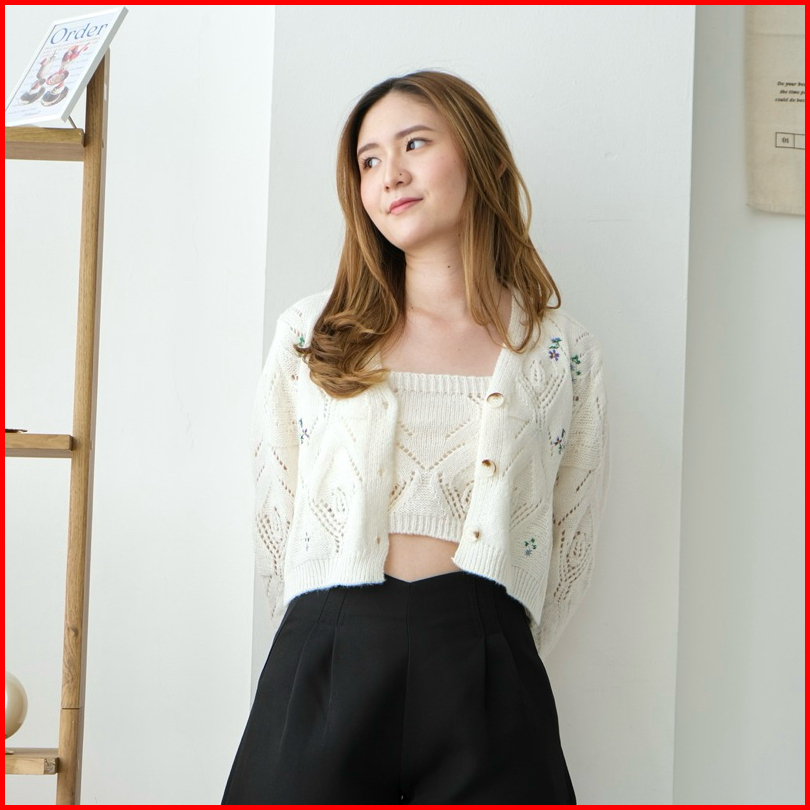 Karina Cardigan Set Cardigan Floral Rajut Wanita