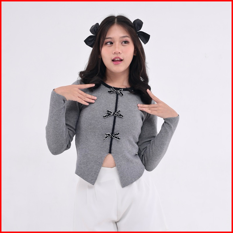 Minji Bowy Top Bowy Knit Top Atasan Panjang Wanita