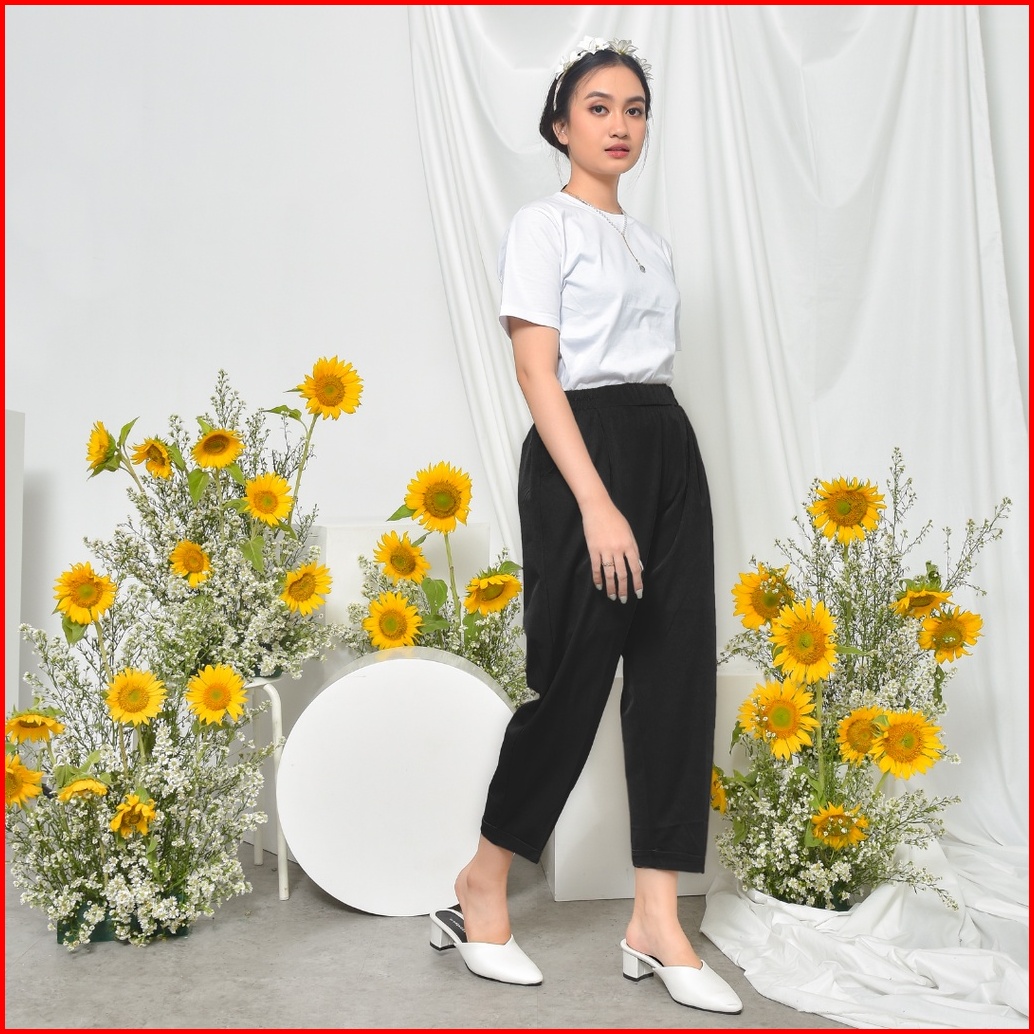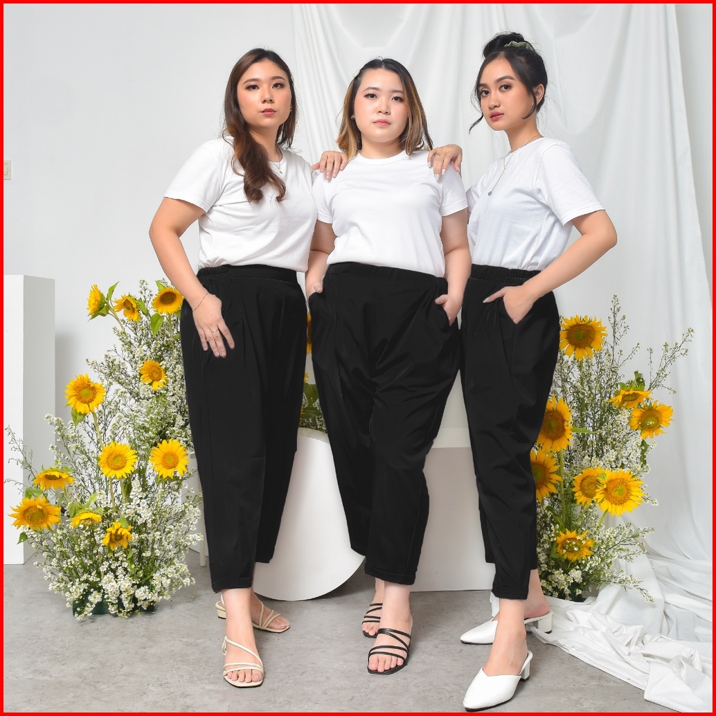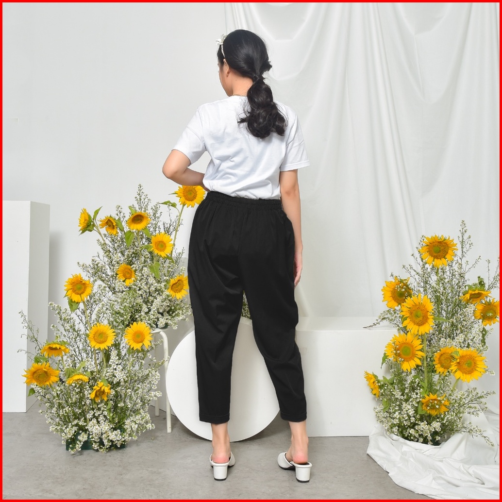 Ie.demode Karin Celana Panjang Wanita Daily Kerja Kantor Big Size Highwaist Baggy Ankle Pants Hitam