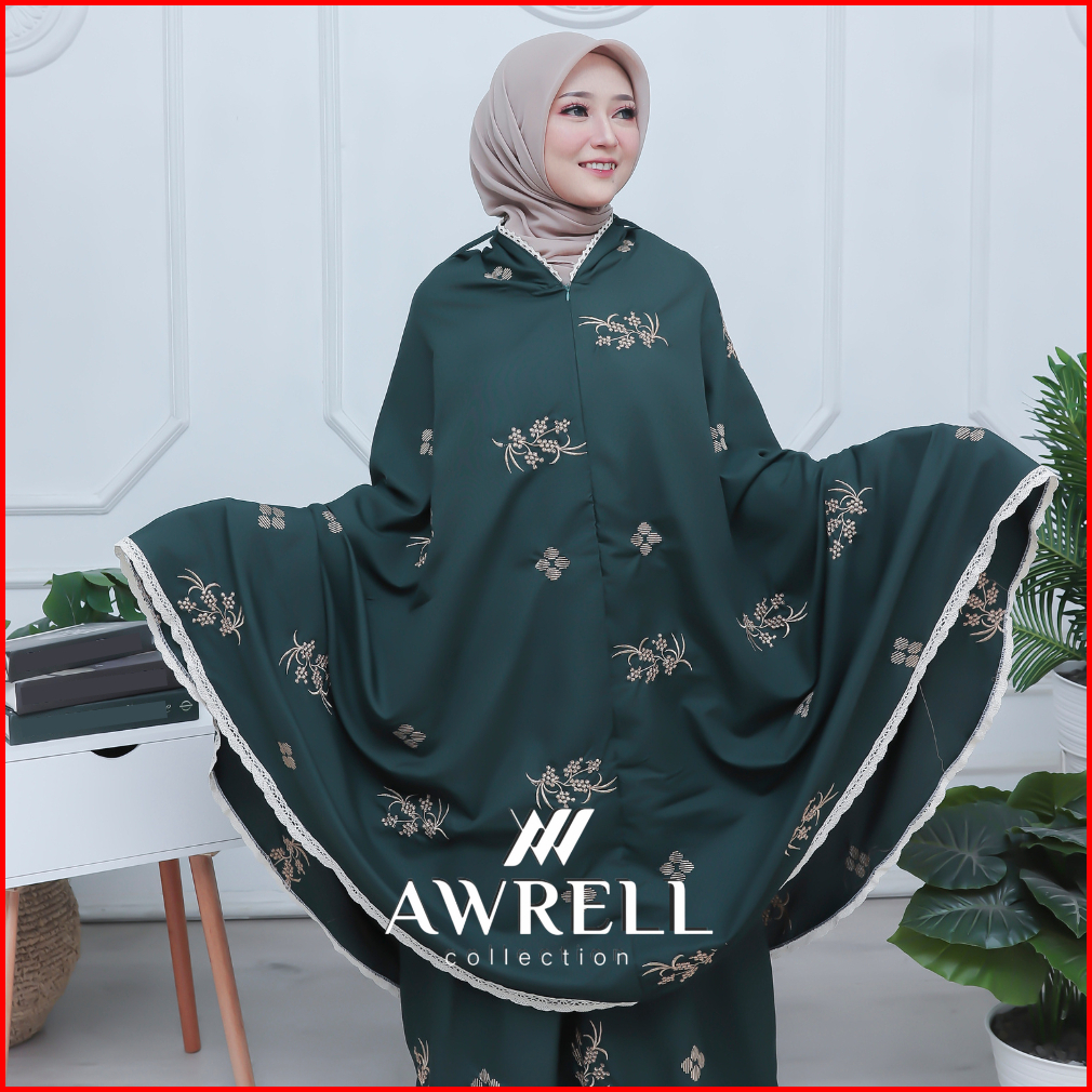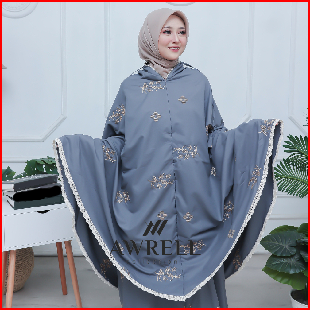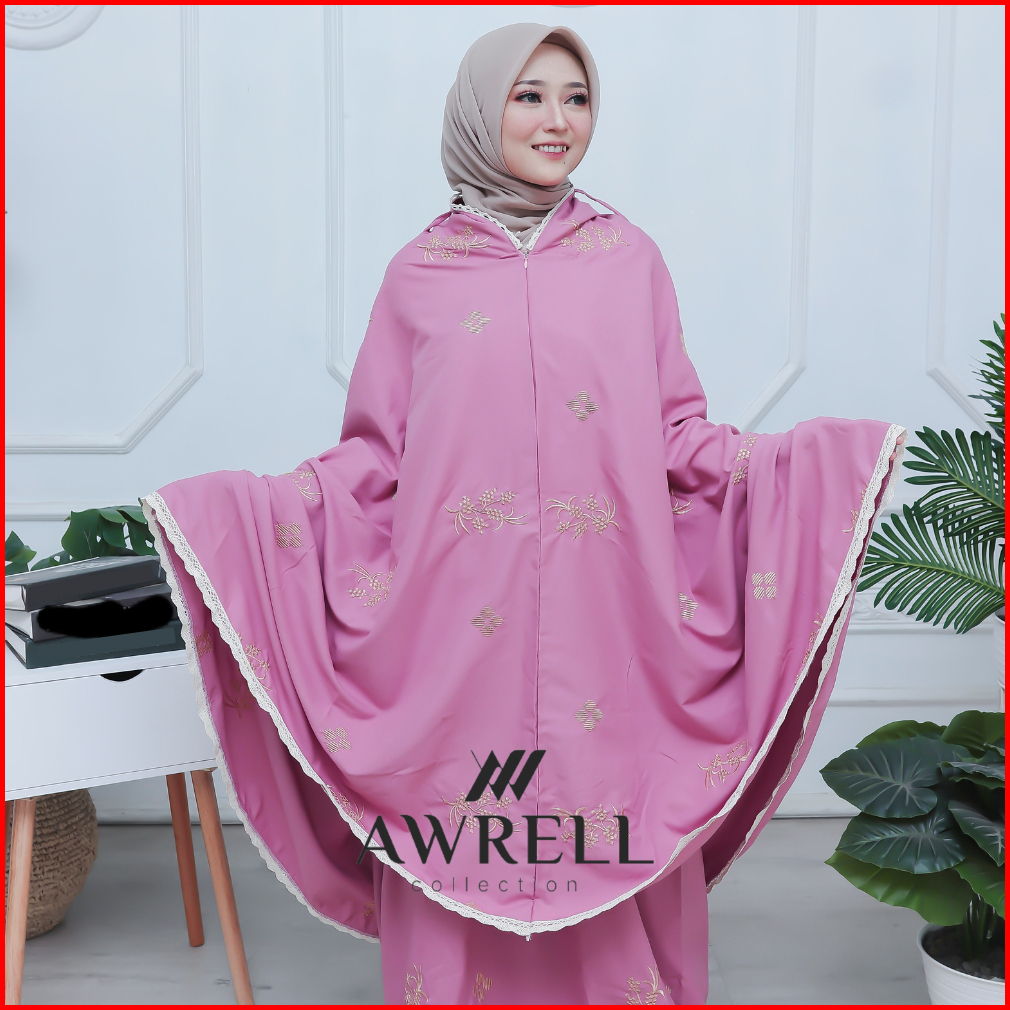 Awrellcollection - Mukena 2in1 Dewasa Katun Bordir Mukena Traveling Premium