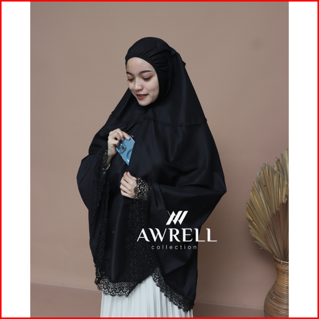 Awrellcollection - Bergo Umroh Haji Premium Saku Resleting Renda Mewah