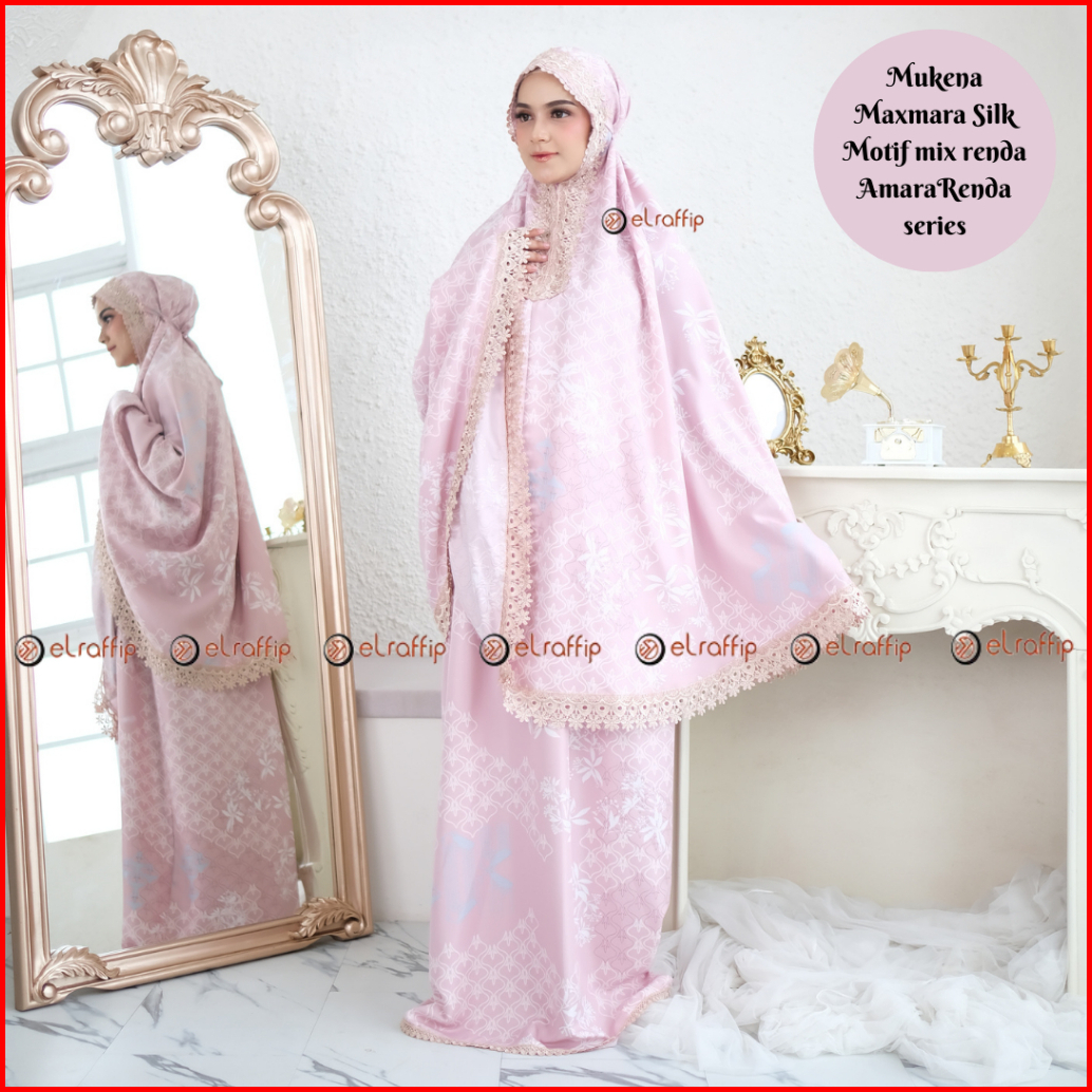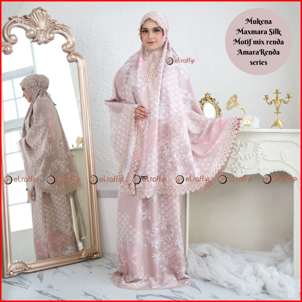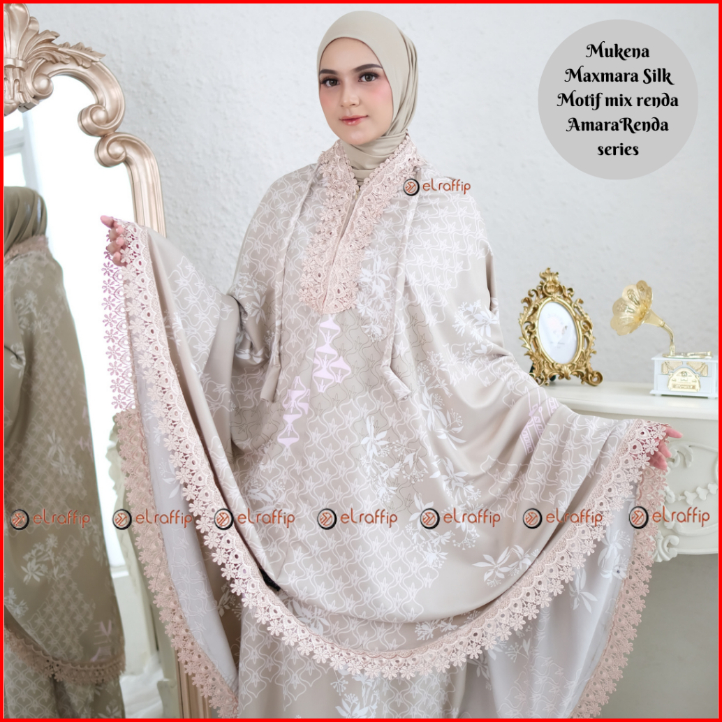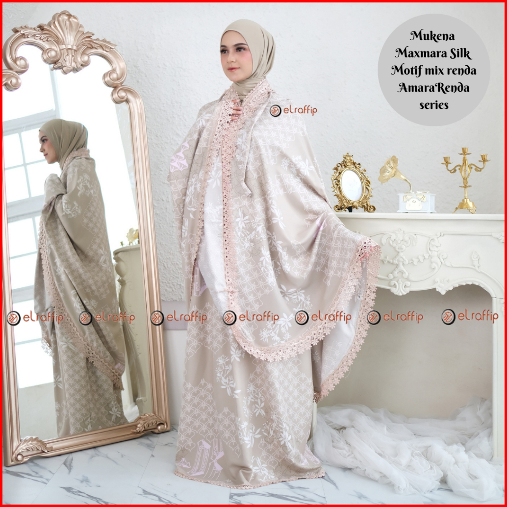 Elraffip-mukena Dewasa 2in1 Satin Printing Premium Motif Luxury Cantik Kombinasi Renda Bordir