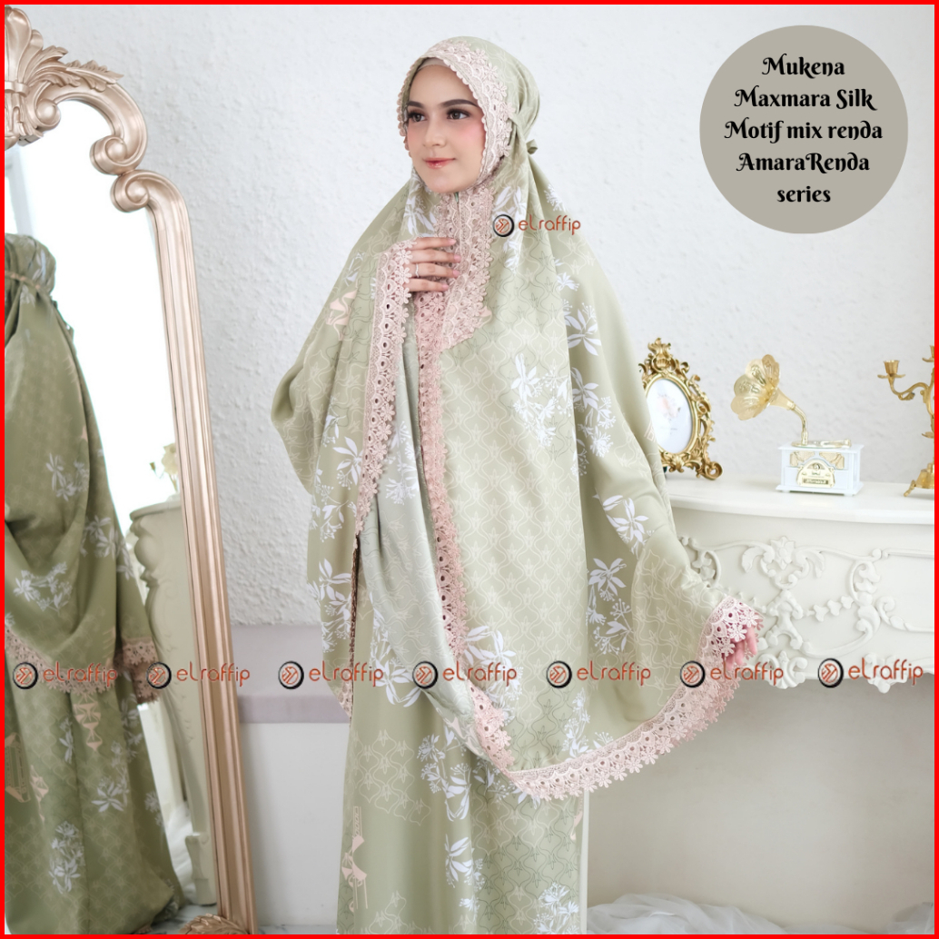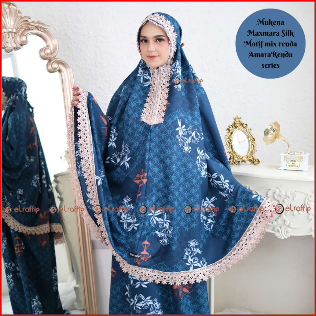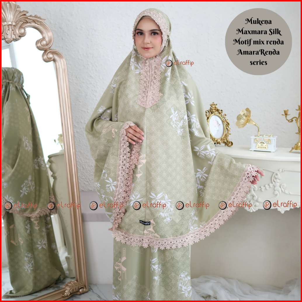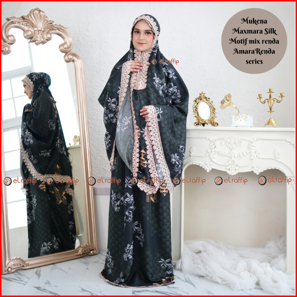 Elraffip-mukena Dewasa 2in1 Satin Printing Premium Motif Luxury Cantik Kombinasi Renda Bordir