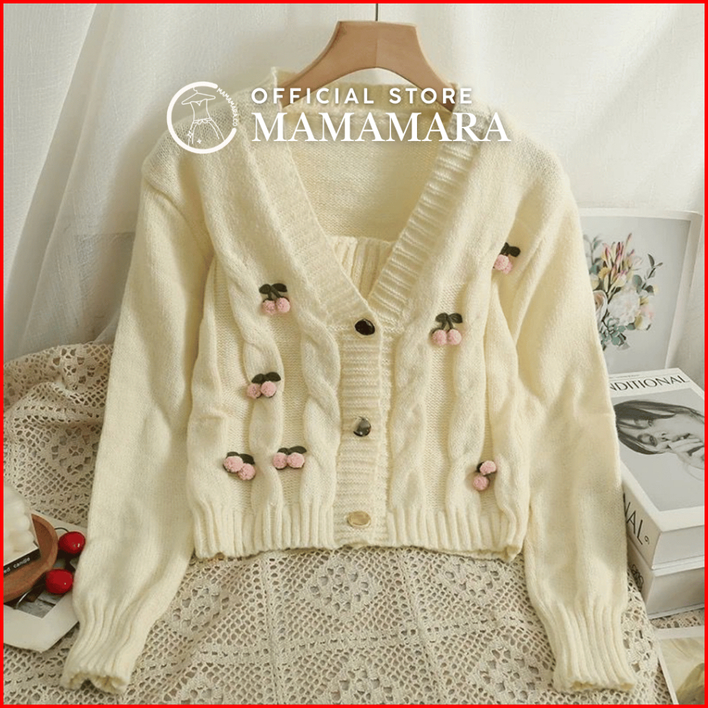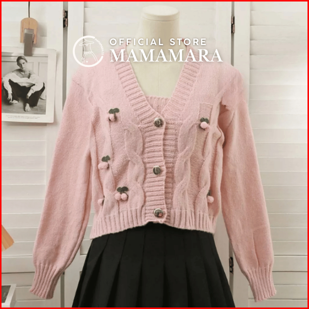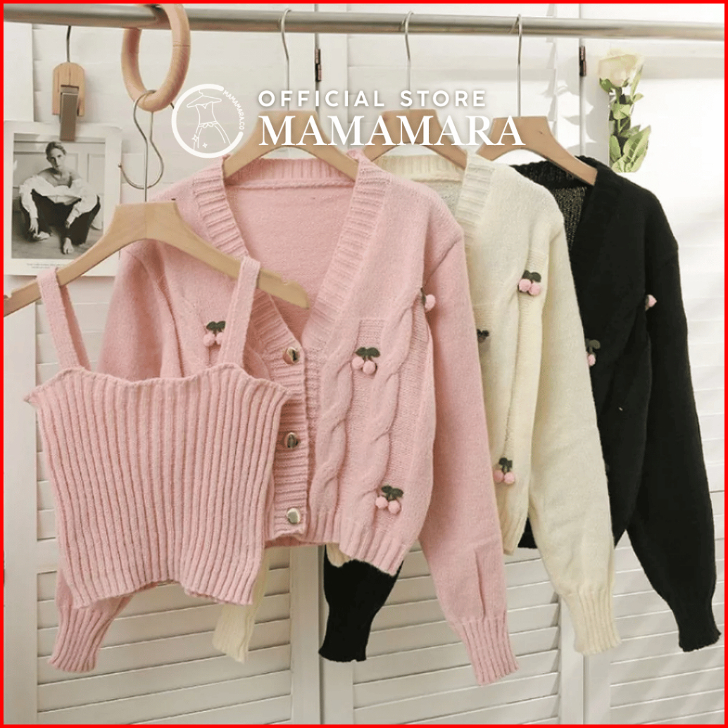Mamamara - Cardigan Cherry Wol Rajut One Set Ala Korea