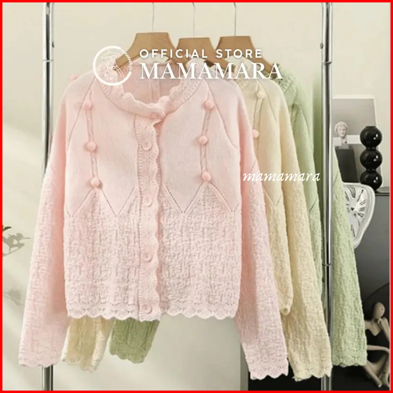 Mamamara - Cardigan Korean Bola Rajut Premium Wanita Atasan Sweater Knitwear Outer