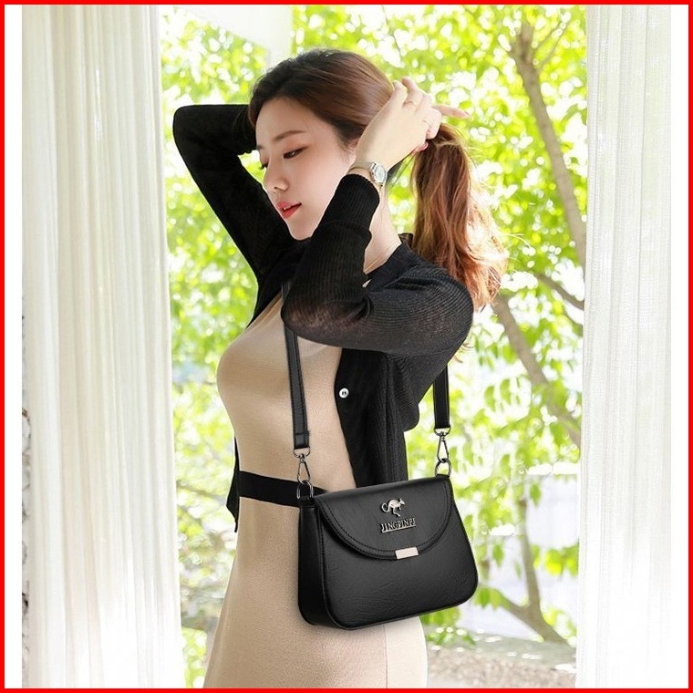 Tas Selempang Wanita Kulit Hitam Jeanne Ta551b5 Premium Korea Sling Bag Remaja Cewek Kekinian Murah Batam Branded Fashio