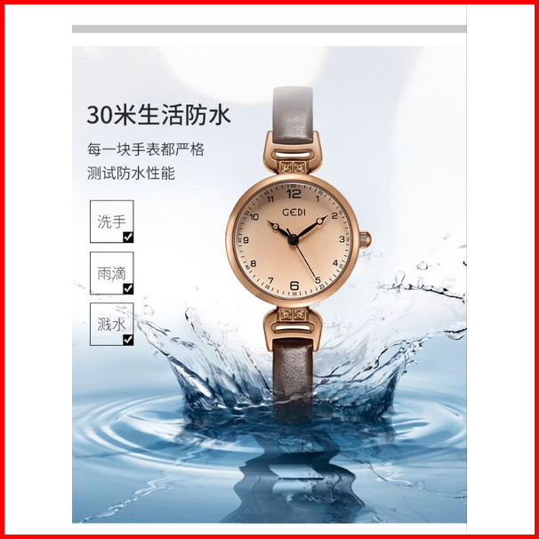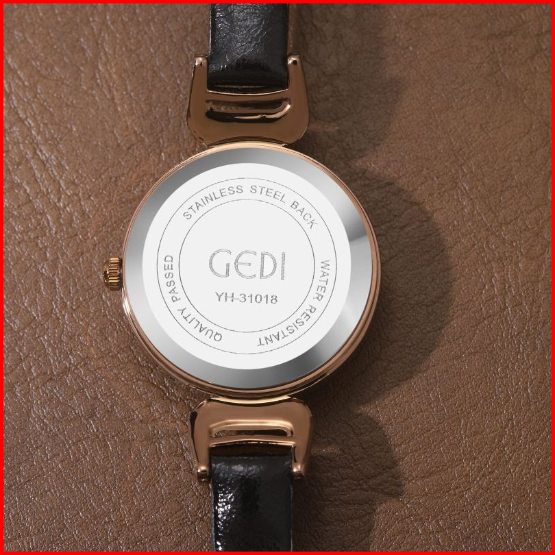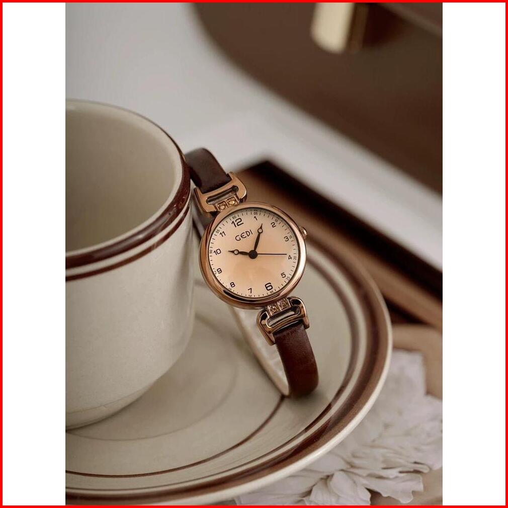 Gedi Jam Tangan Wanita Tali Kulit Asli Jam Analog Vintage Elegant Korea Anti Air 74416