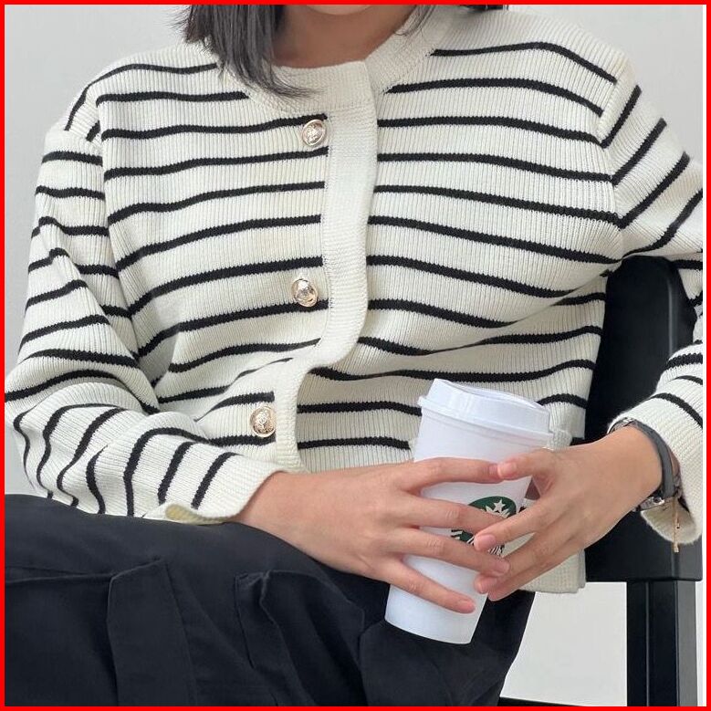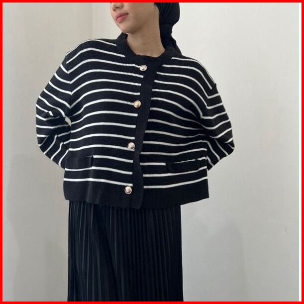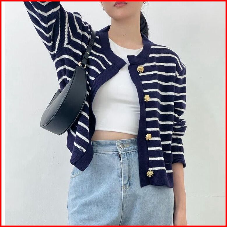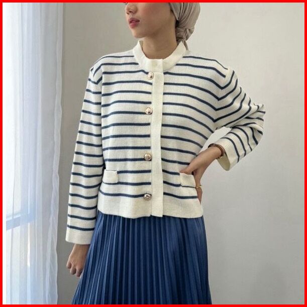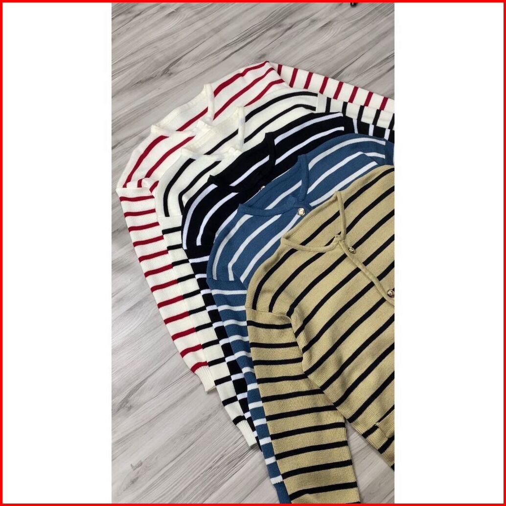 Jisso Stripe Knit Cardy Rajut Premium Korean Stile Fashion Knitwear Atasan Wanita