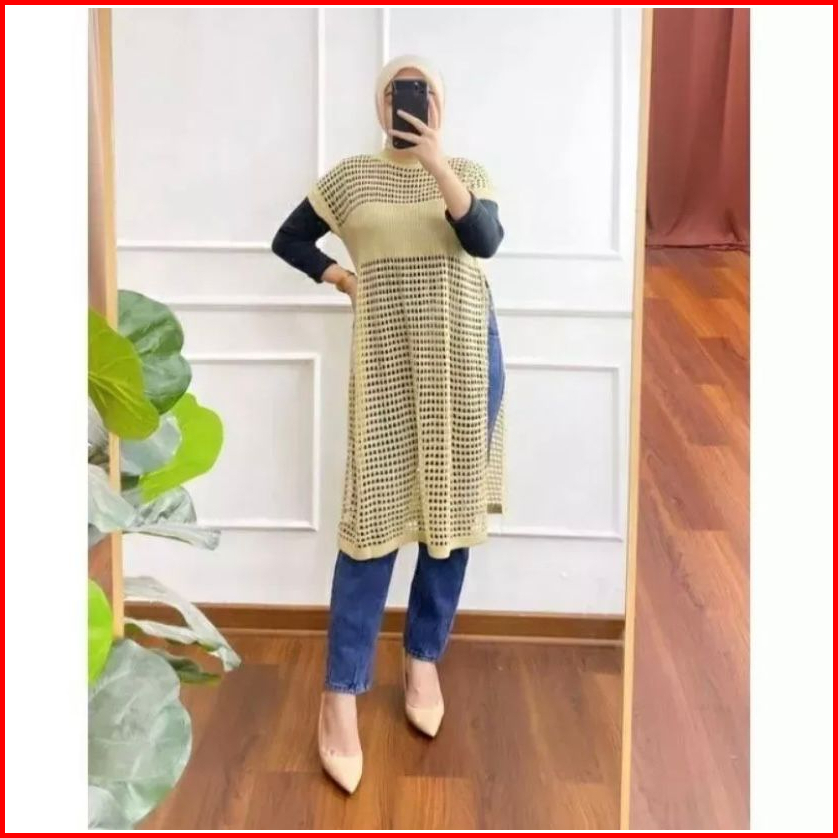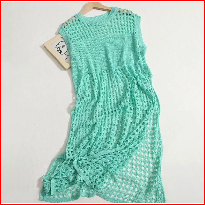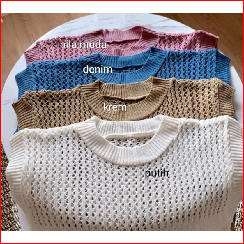 Ruby Knit Atasan Tunik Rajut Jaring Tanpa Lengan.