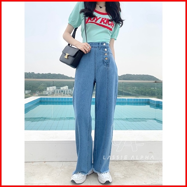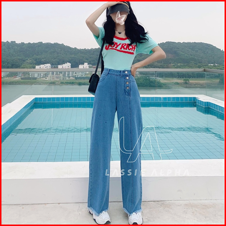 Lassie Alpha J28 Celana Jeans Wanita Celana Wanita Celana Panjang Berpinggang Tinggi Hw Celana Panjang Berkaki Lurus Cel