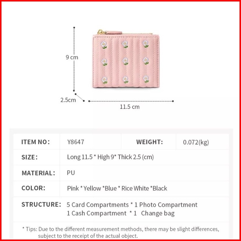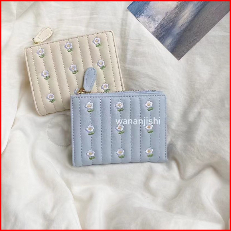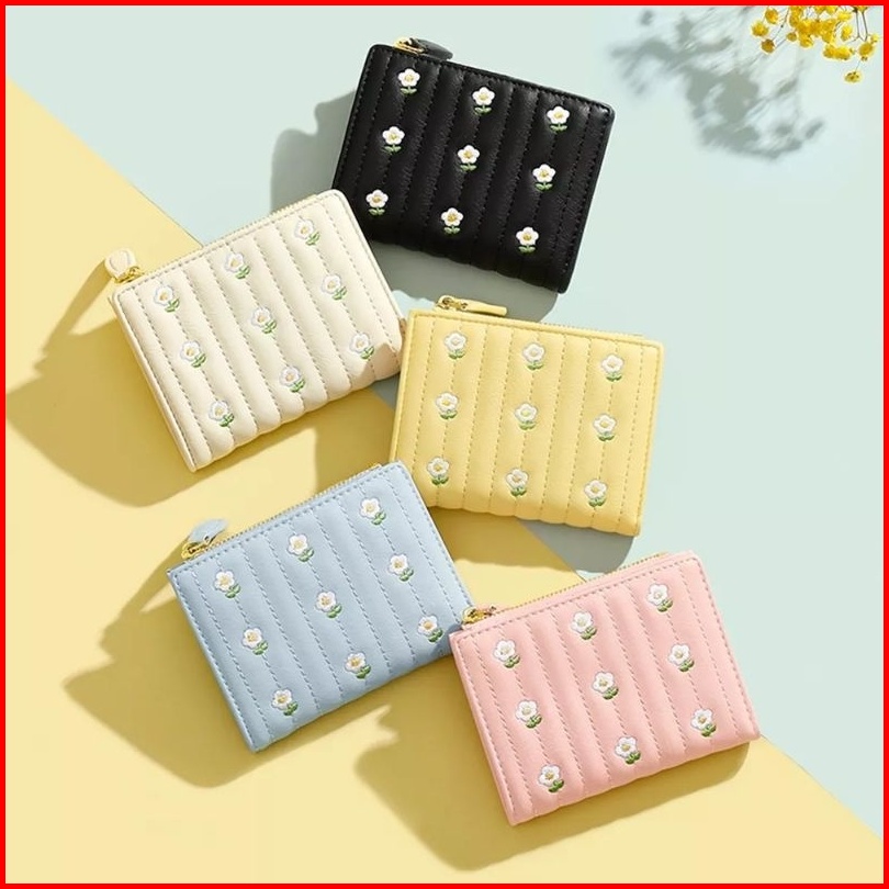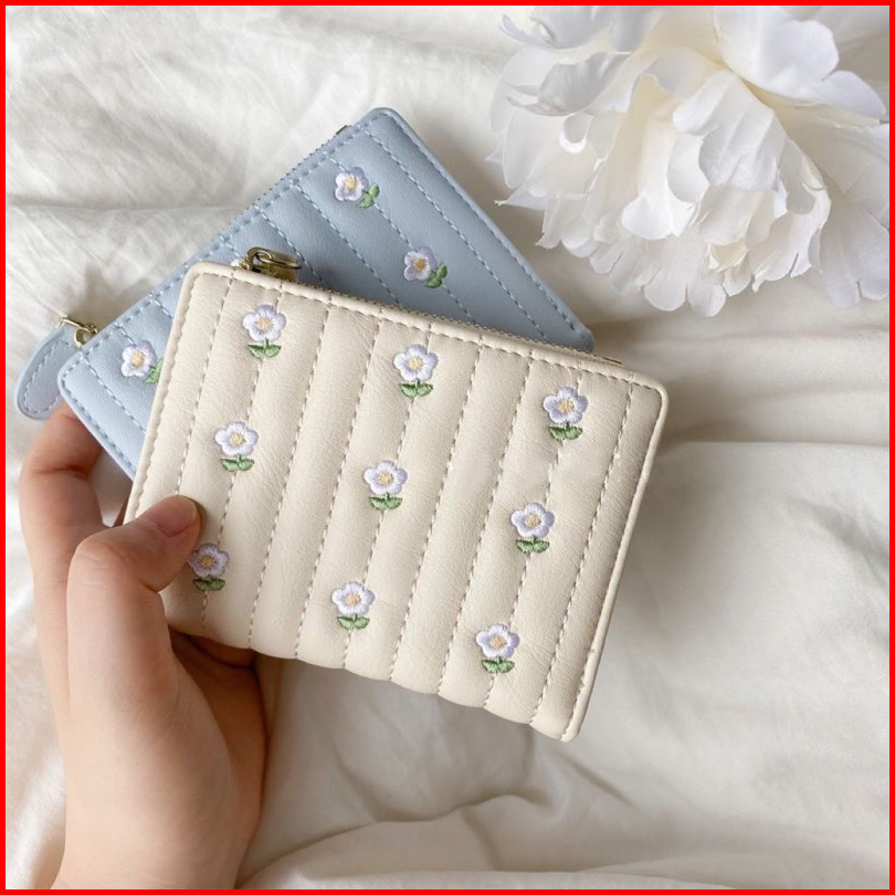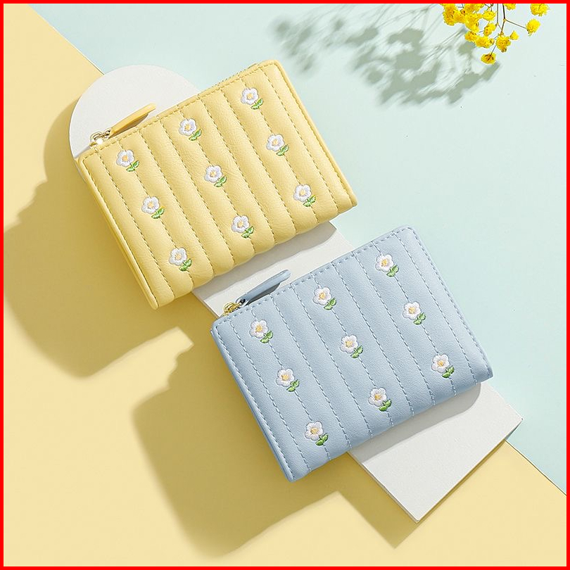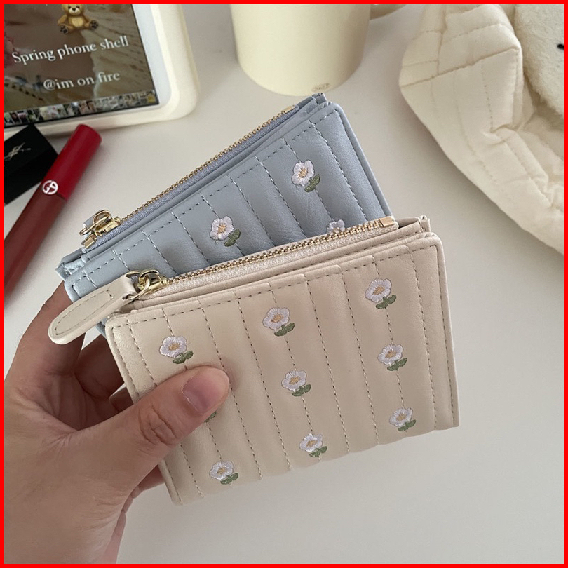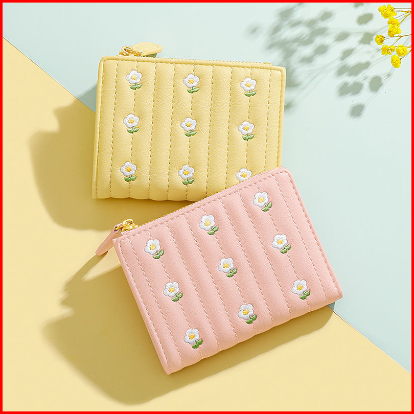 Fashion Bordir Bunga Lipat Pendek Dompet Wanita Dompet Mahasiswa Dompet Koin