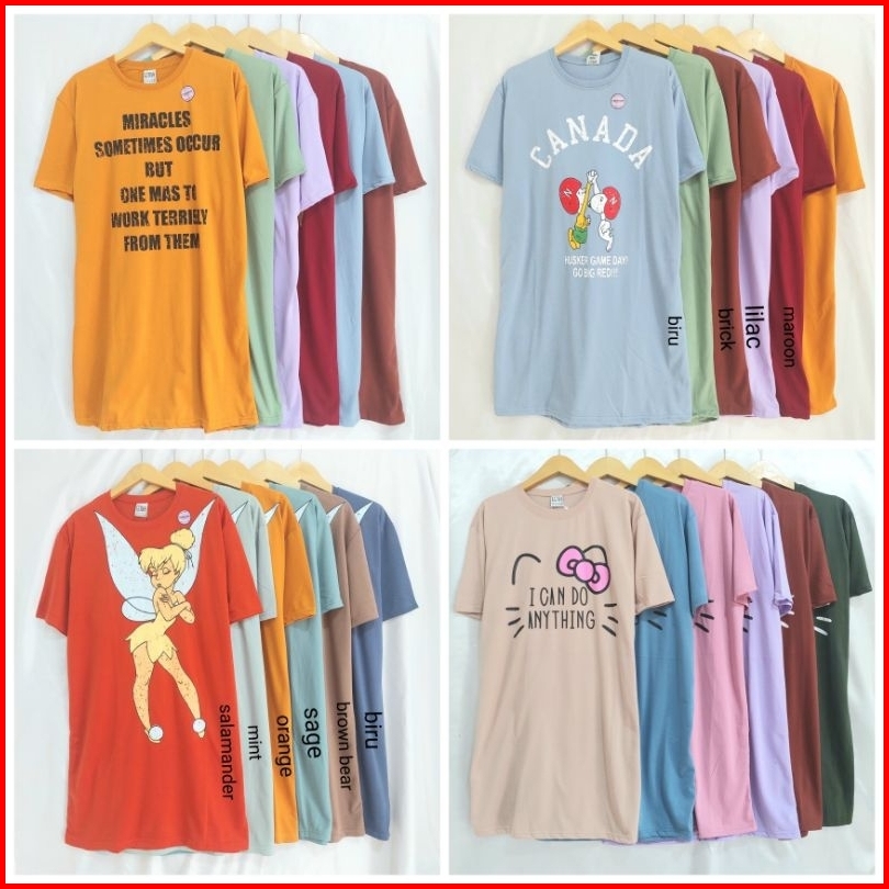 Baju Kaos Daster Dress Jumbo Atasan Baju Kaos Wanita Premium Lucu Karakter Kartun Kekinian Tumbler Tee