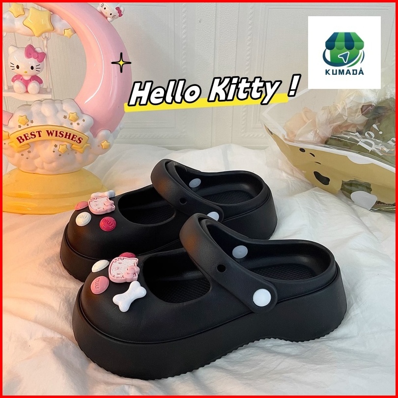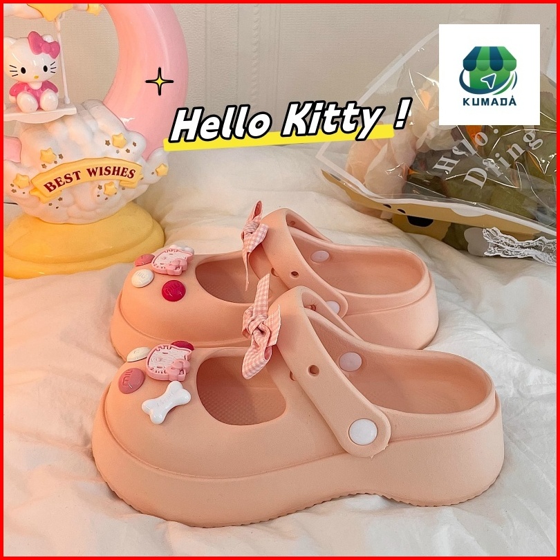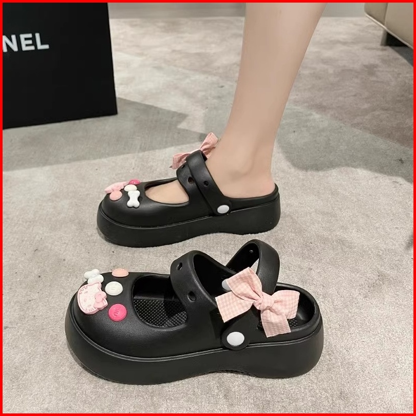 Sepatu Croc Kartun Lucu Untuk Pakaian Luar Wanita Sandal Baotou Bersol Tebal Hati Girly Baru