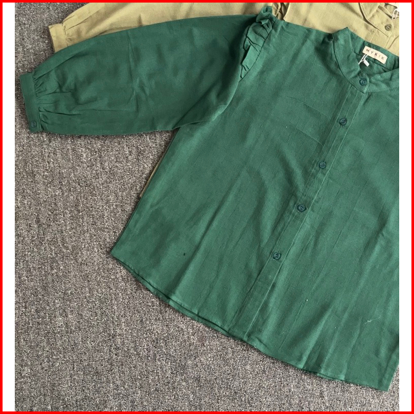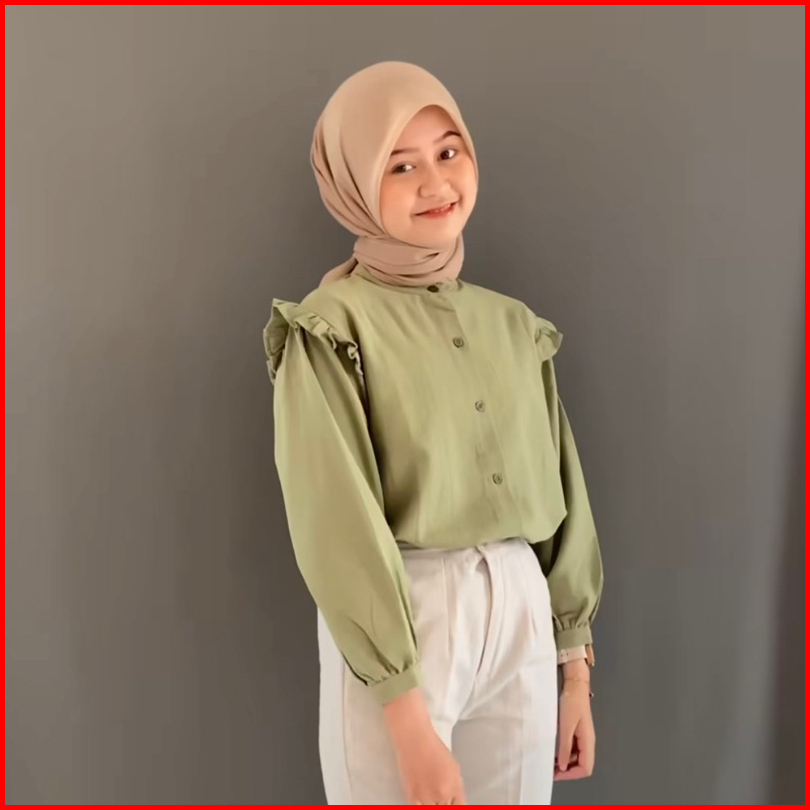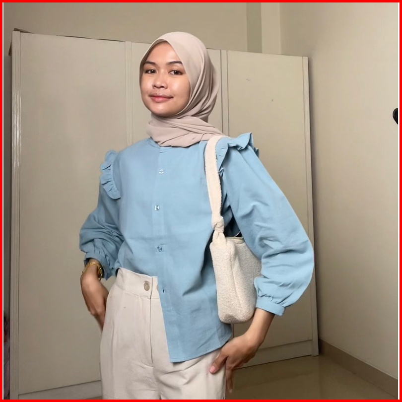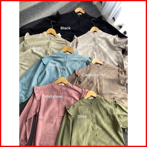 Original By Mykikstore - Lenka Blouse - Blouse Linen Lengan Ruffle - Korean Style - Yurim Blouse