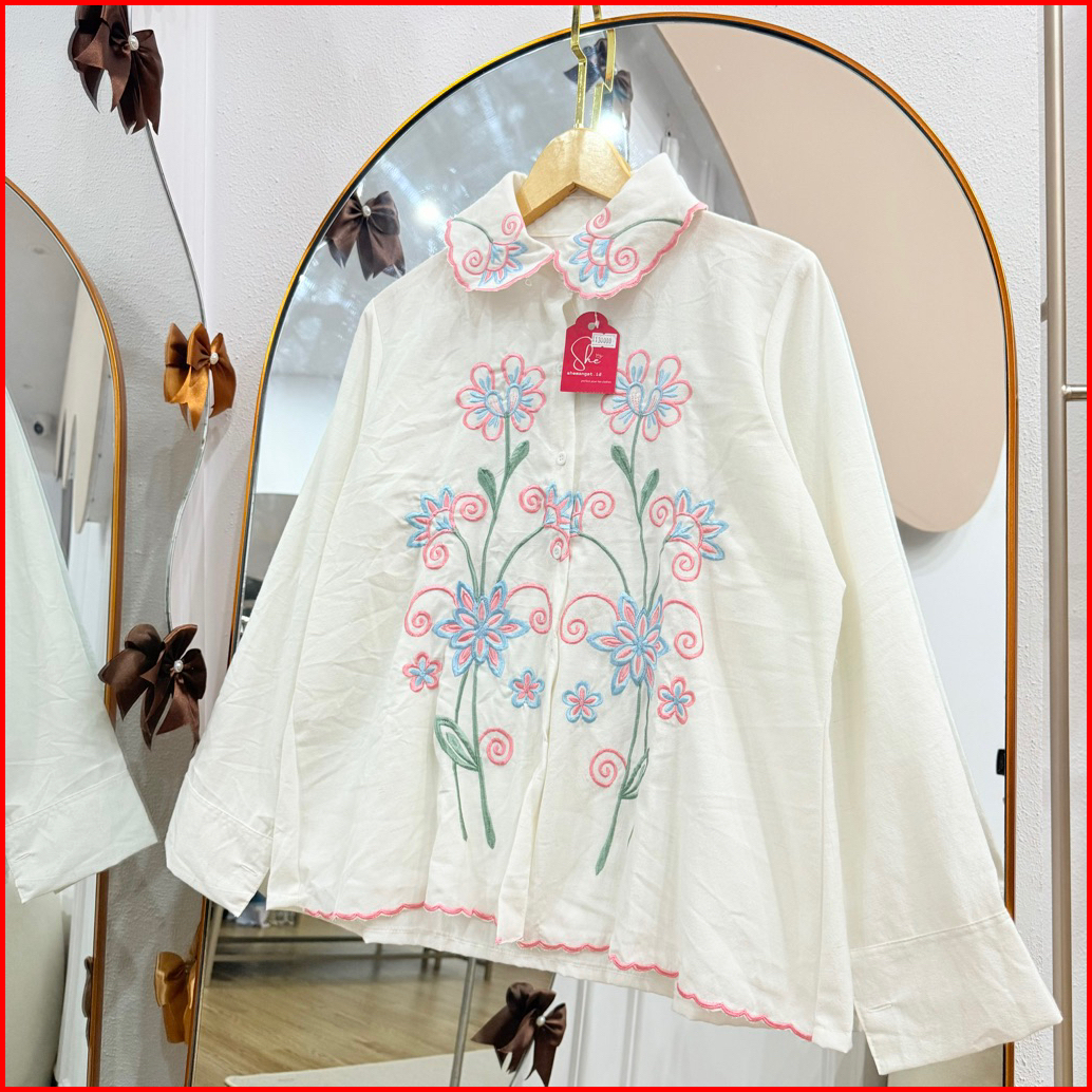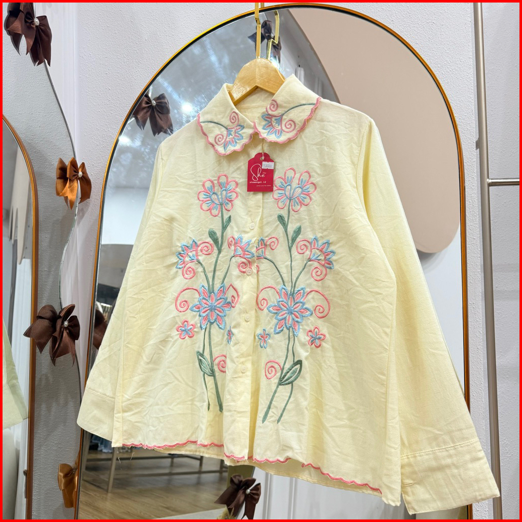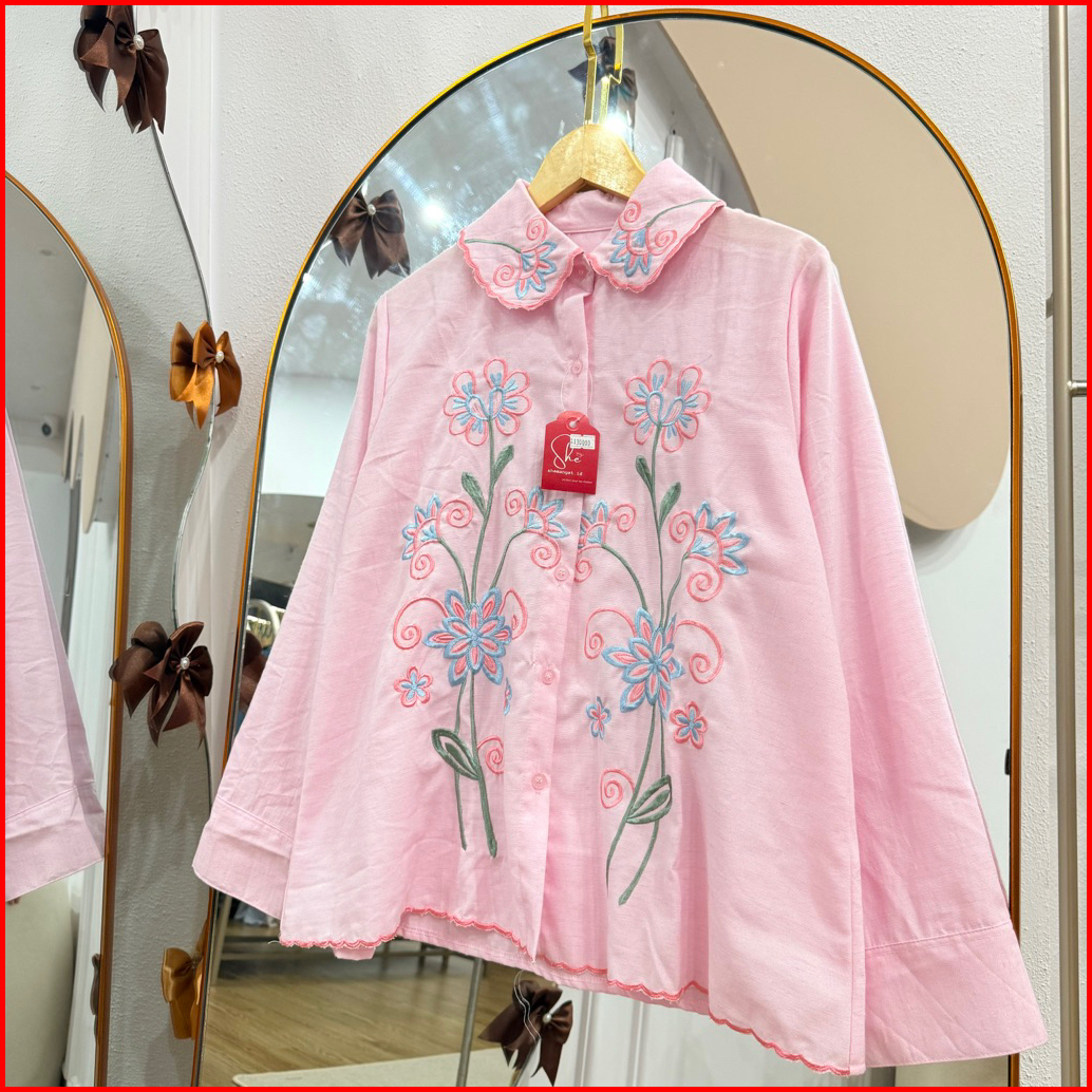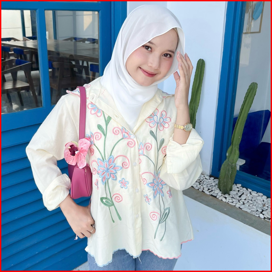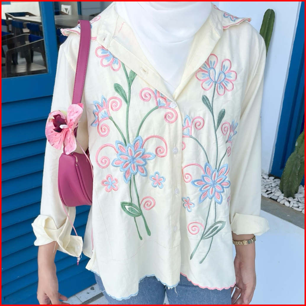 She - Jasmine Kemeja Bordir Bunga Kemeja Linen Bordir Flower By Shemangat Id