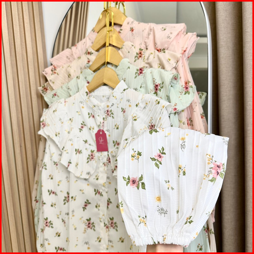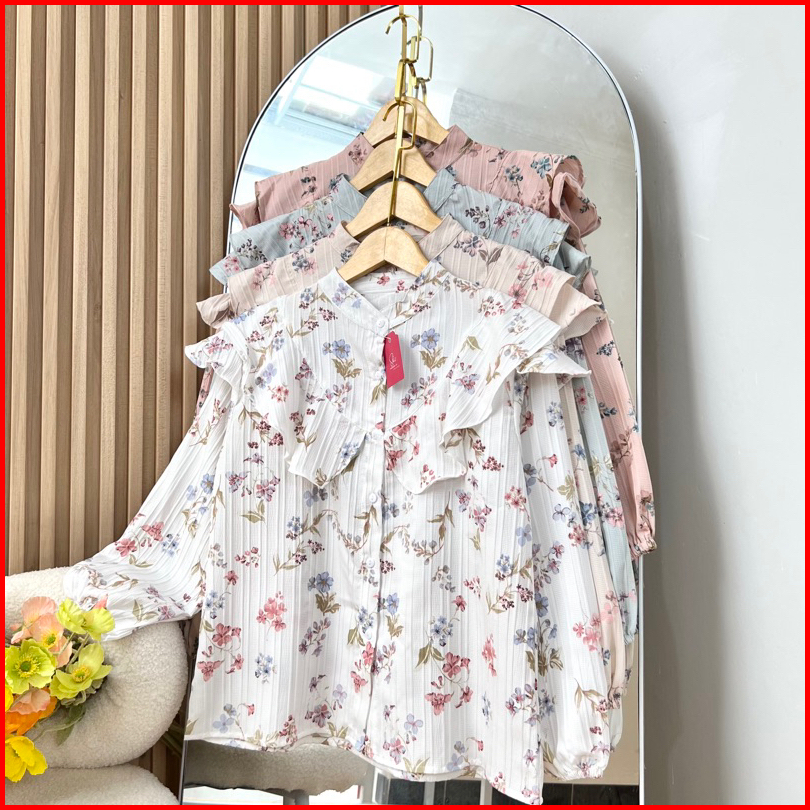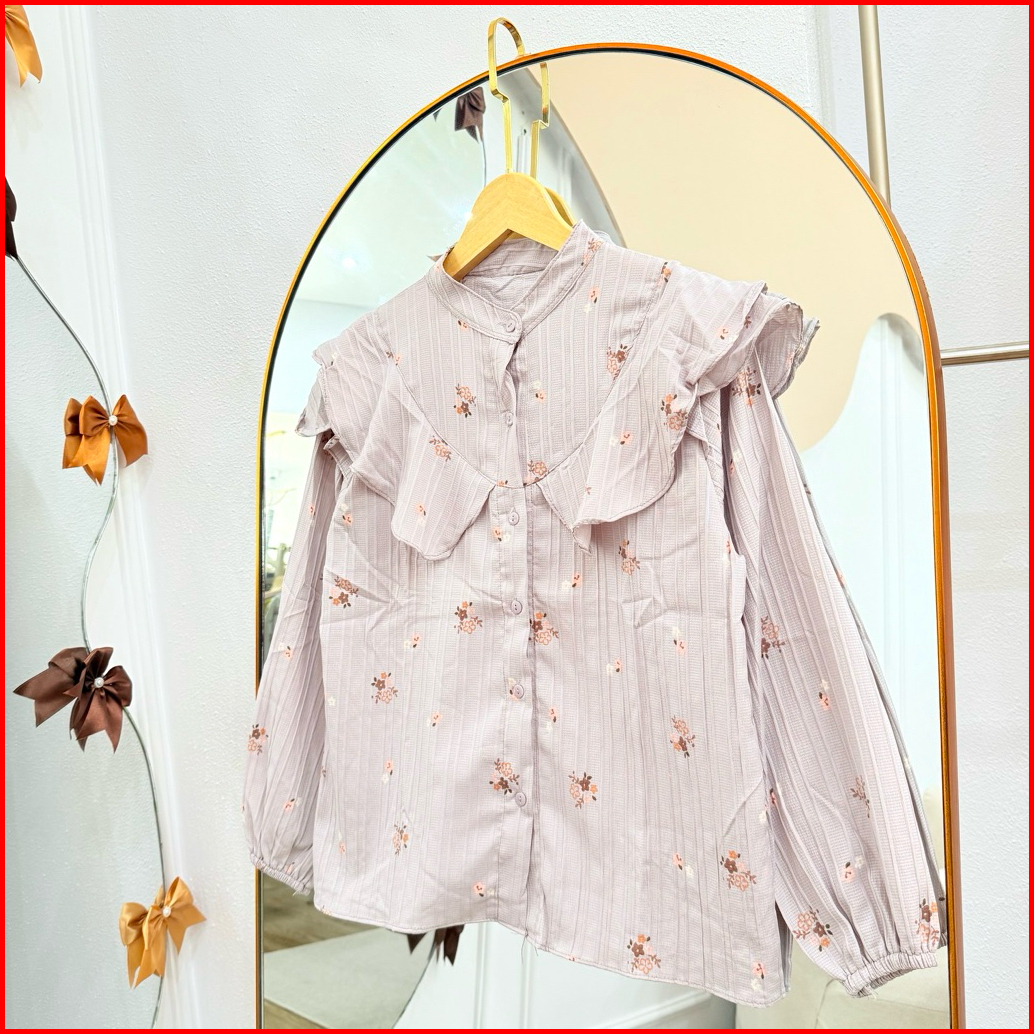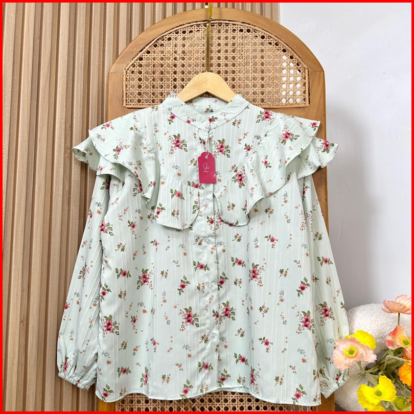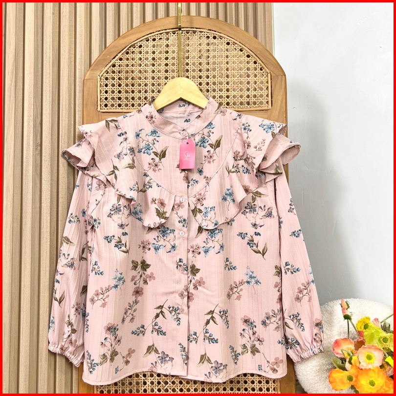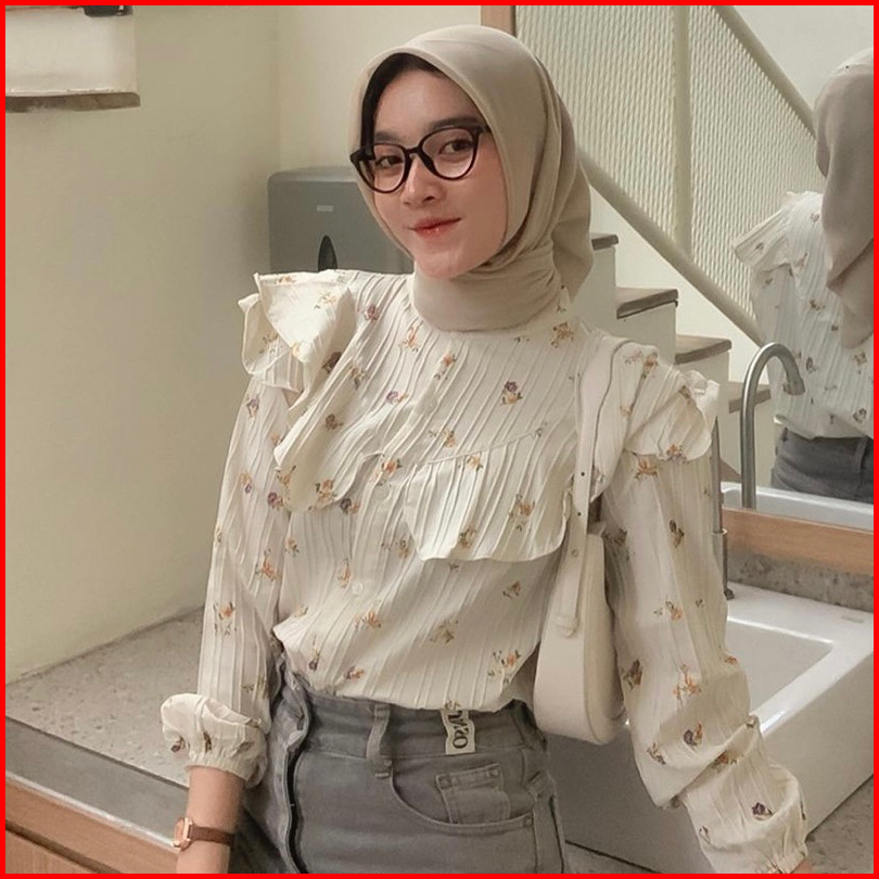 She - Yure Blouse Ruffle Leika Vintage Hijab Bunga Dahlia Ruffle Leika Lengan Panjang By Shemangat Id