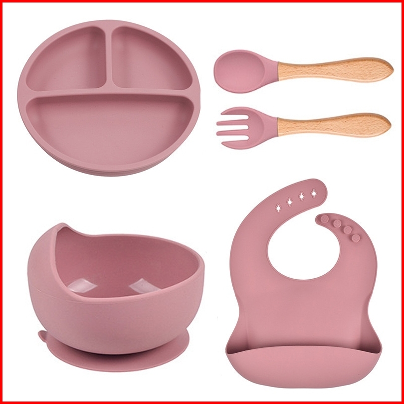 5pcs Peralatan Makan Bayi Alat Makan Bayi Alat Makan Silikon Makan Anak Tahan Suhu Tinggi Tahan Suhu Tinggi Formaldehida