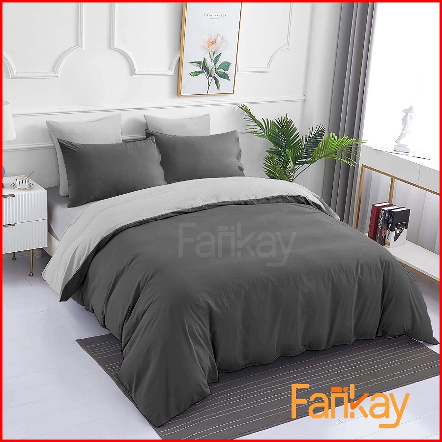 Bed Cover Set Sprei Dark Grey Mix Grey - Ukuran 180x200 160x200 200x200 - Fankay Bedcover