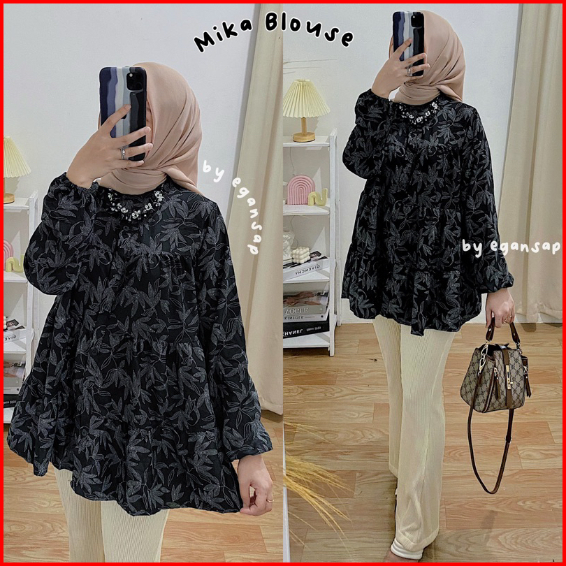 Mika Blouse Tunik Kemeja Flora Atasan Wanita