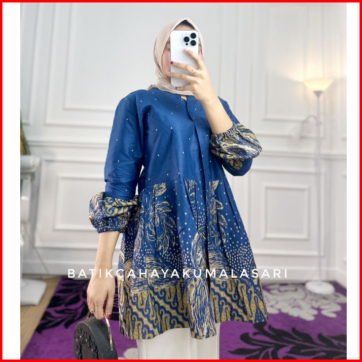 Blouse Batik Wanita Motif Semanis Pharang Biru - Katun Prima Premium Solo