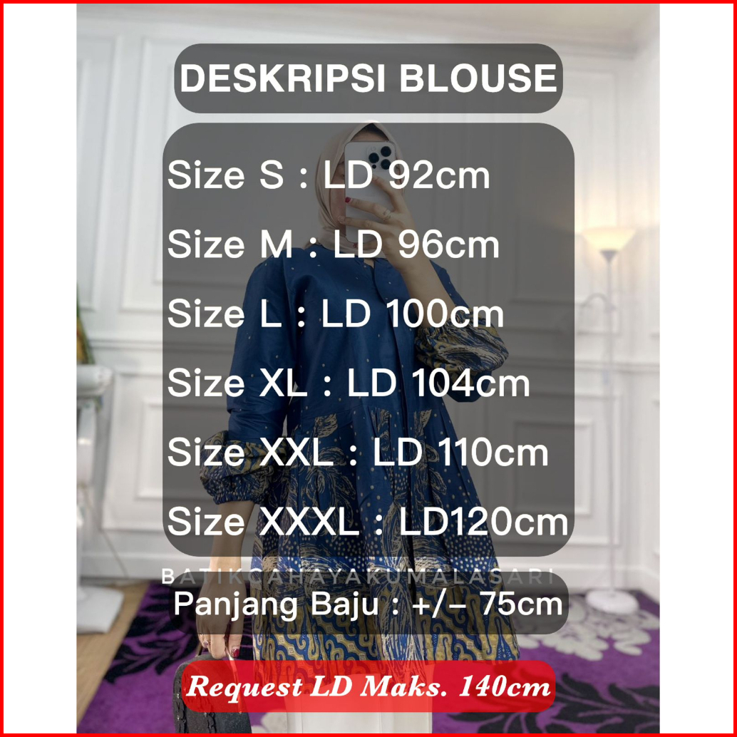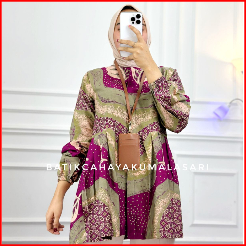 Arruna Blouse Batik Wanita Magenta - Bahan Katun Lampion - Bluse Wanita Kantoran