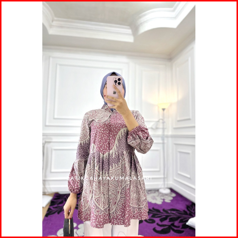 Blouse Batik Wanita Lengan Balon Motif Medina Pink - Bahan Katun Prima Premium