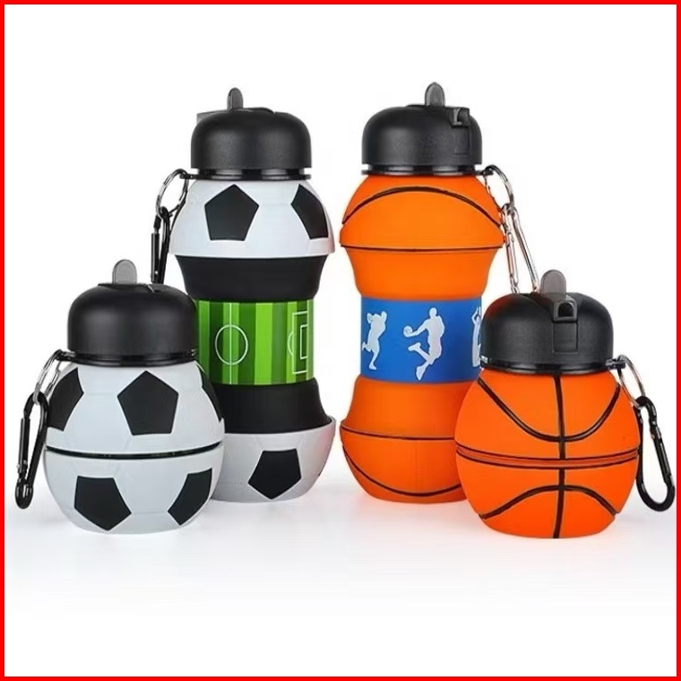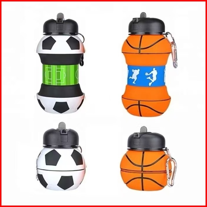 Botol Minum Anak Lipat Silikon Sedotan Tumbler Minimalis Karakter Bola Basket