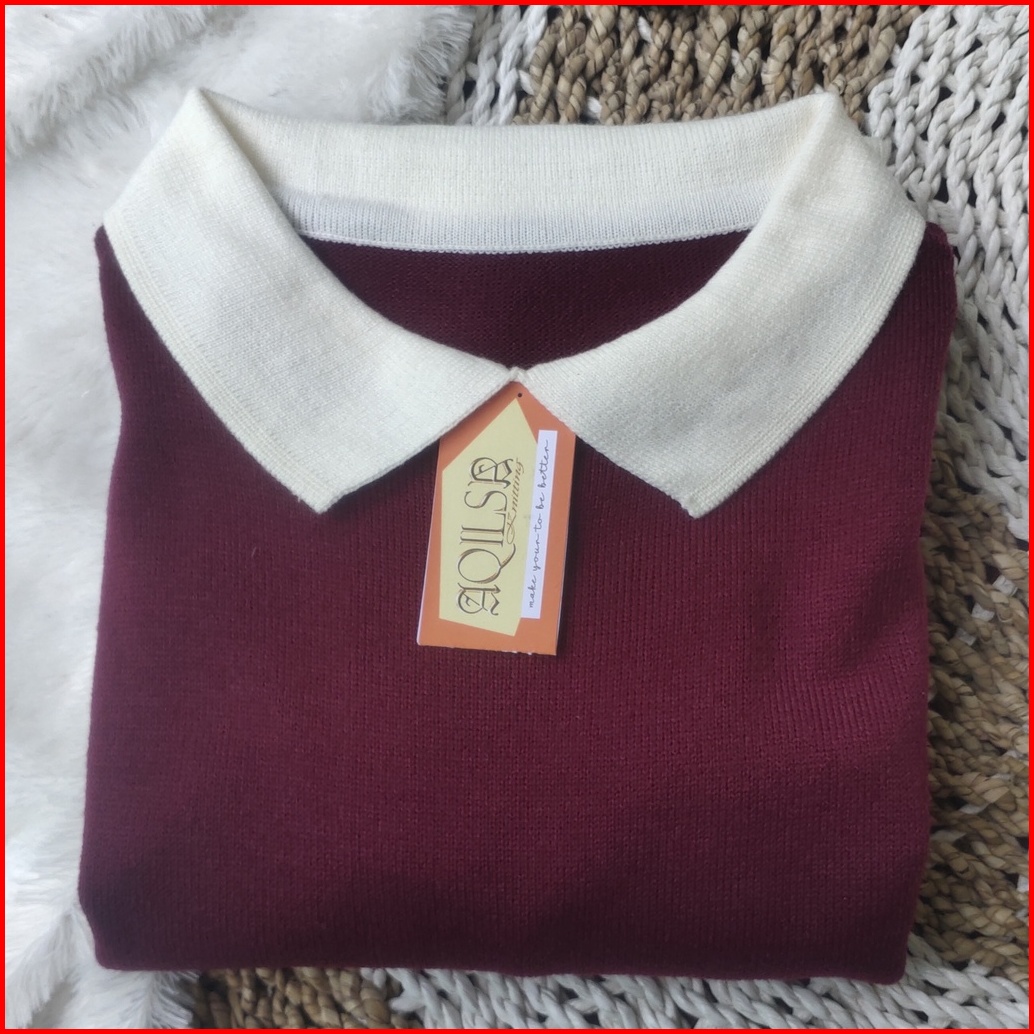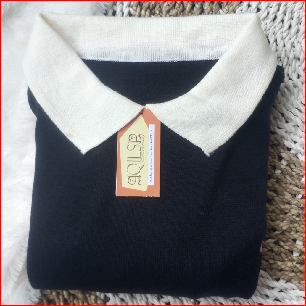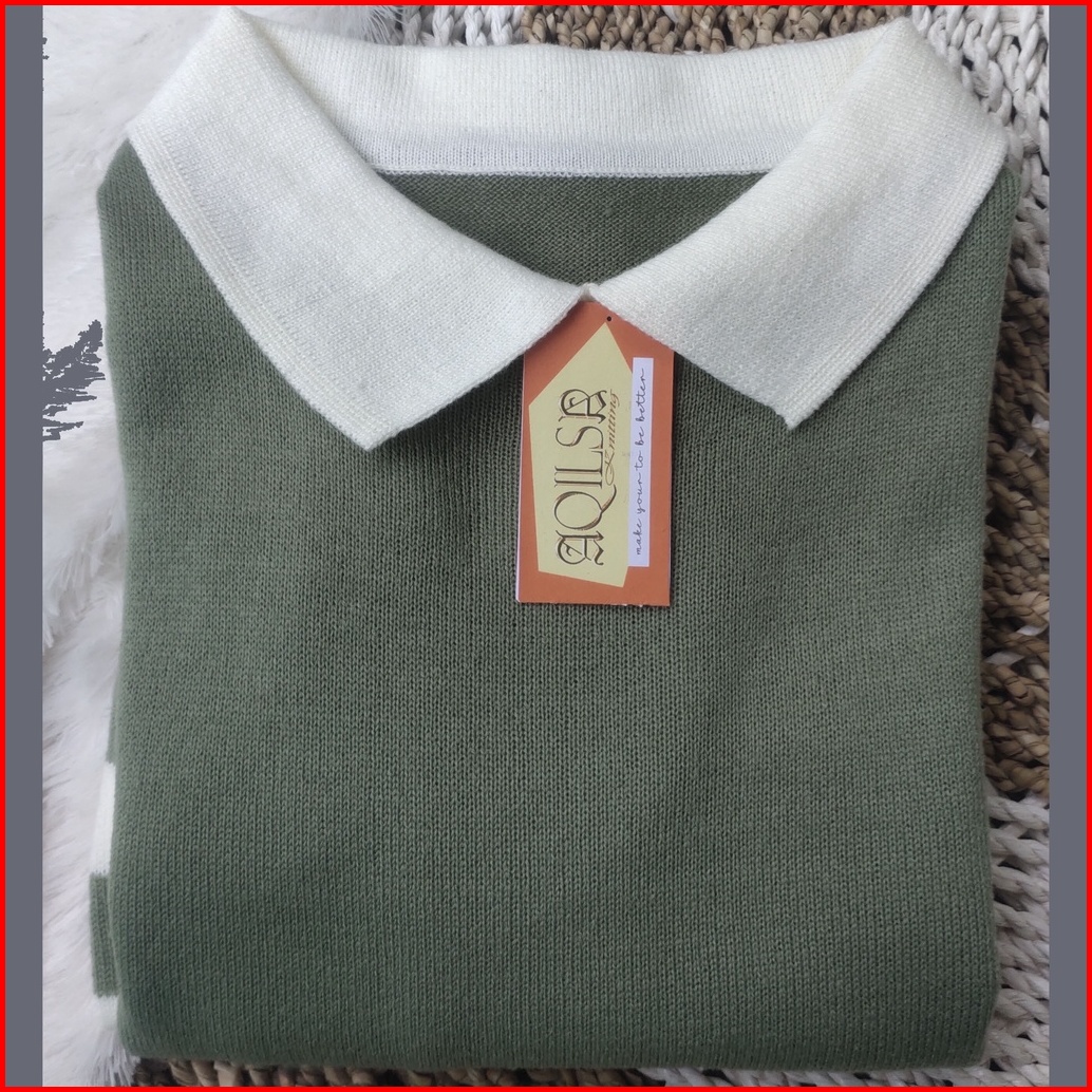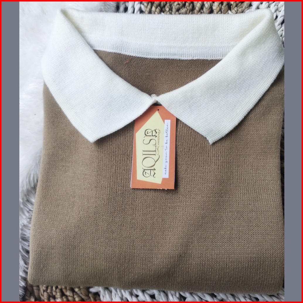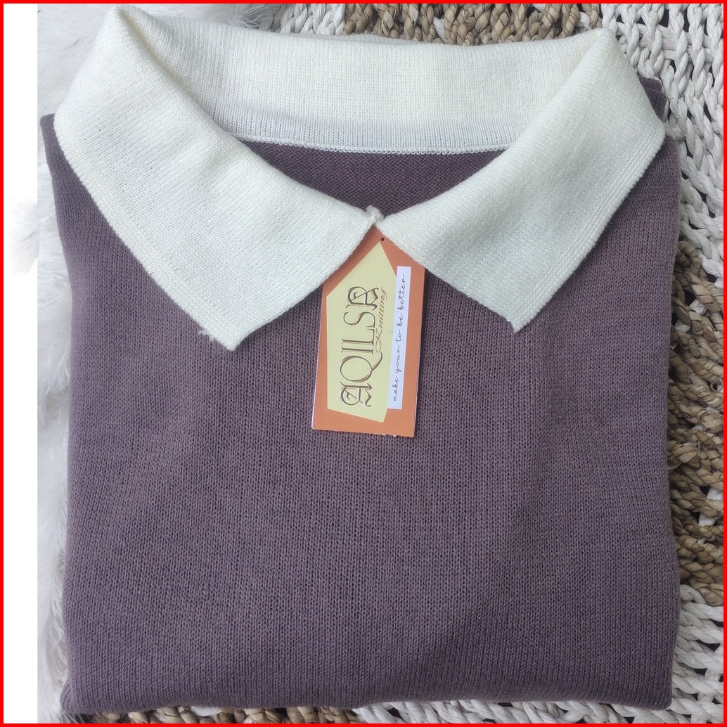 Dress Rajut Nadine Strip Kerah Collar Knitt Dress Aqilsa Knitwear Panjang Sampai Lutut