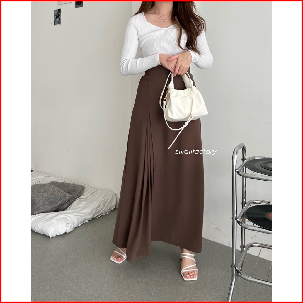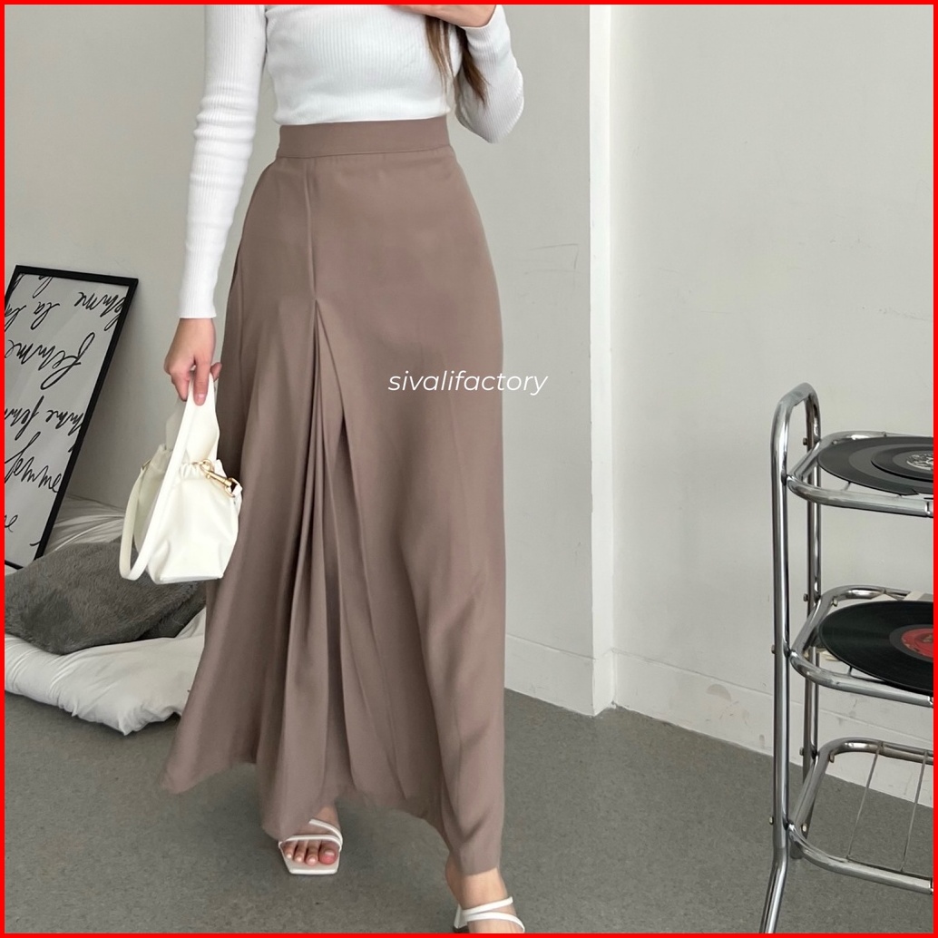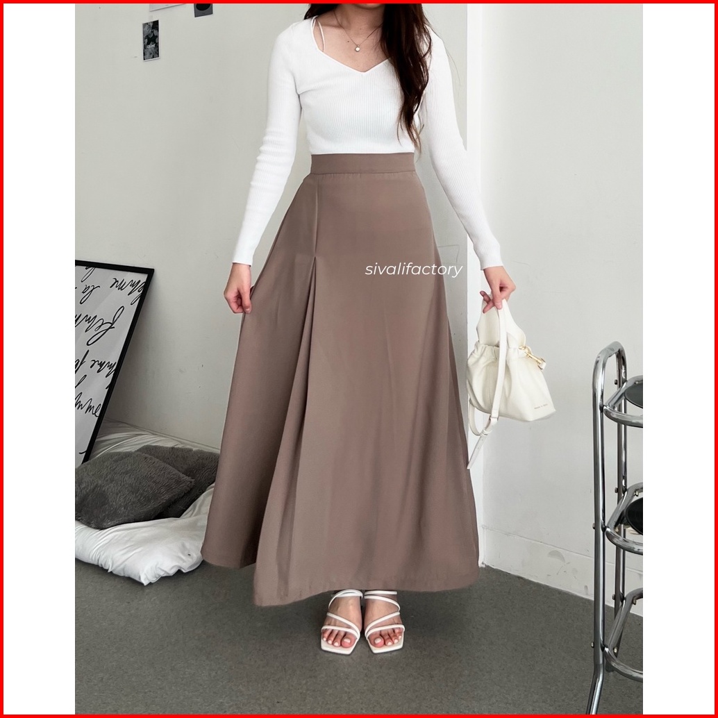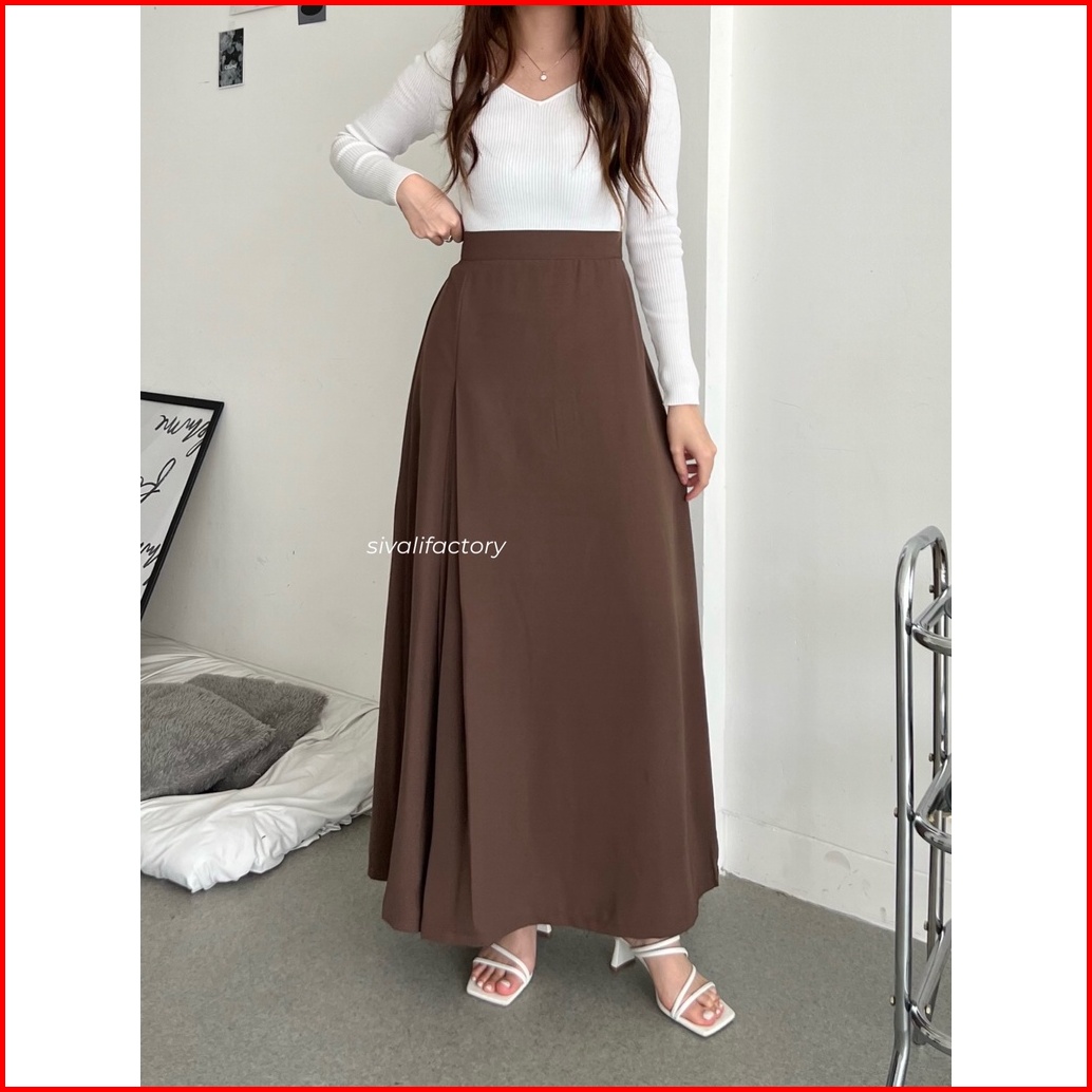 Sivali Bailey Skirt Polyester Skirt Anti Kusut - Midi Maxi Korean Loose Skirt - Rok Wanita 8862