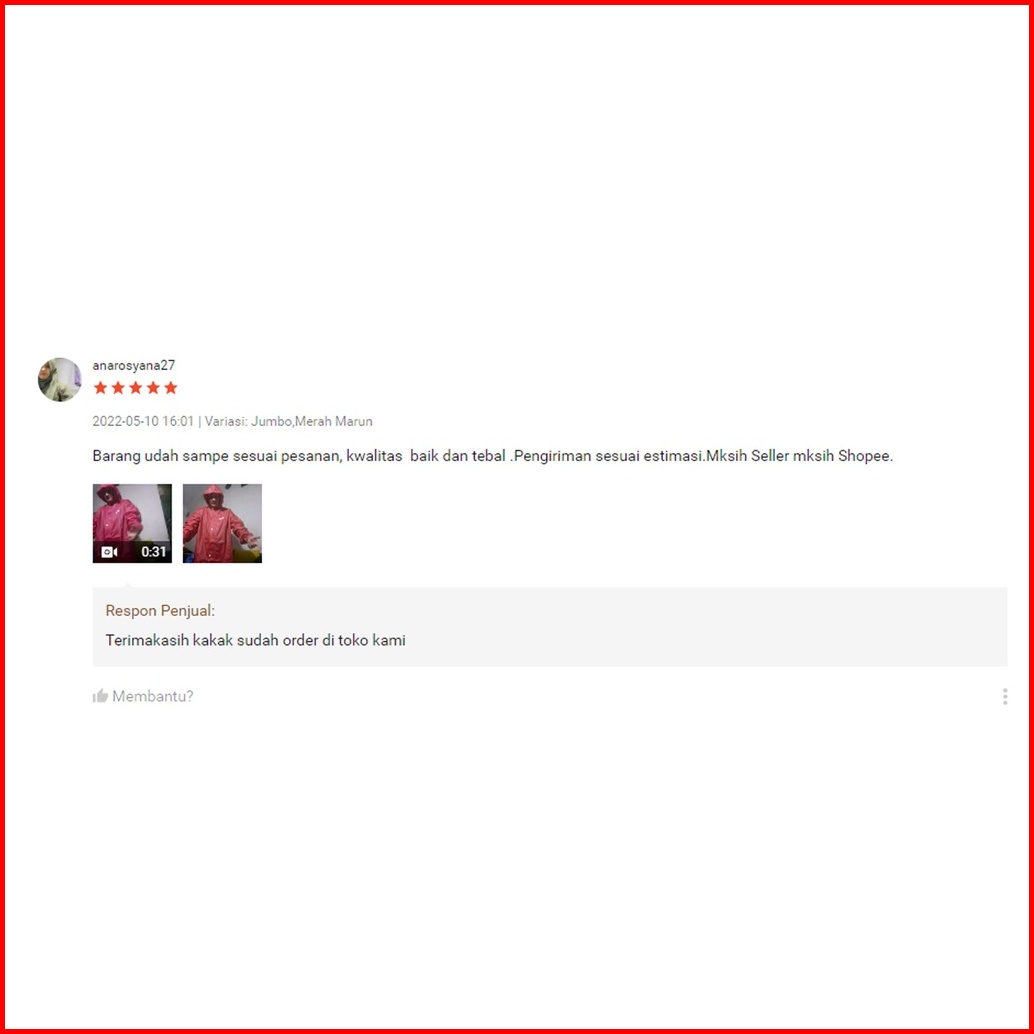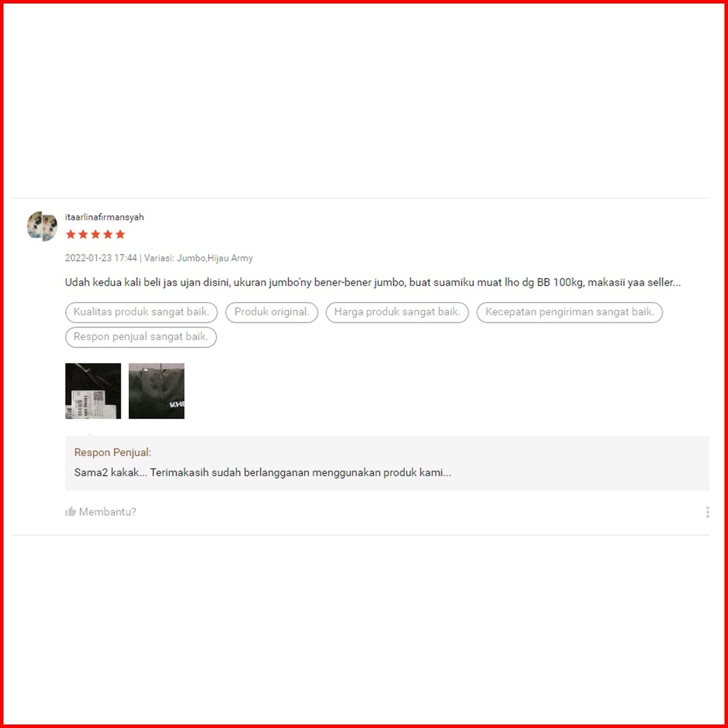 Jas Hujan Setelan Jumbo Original Khn Terbaik