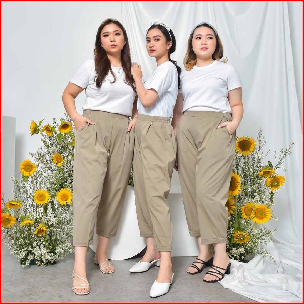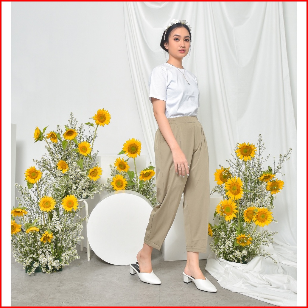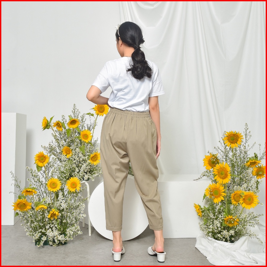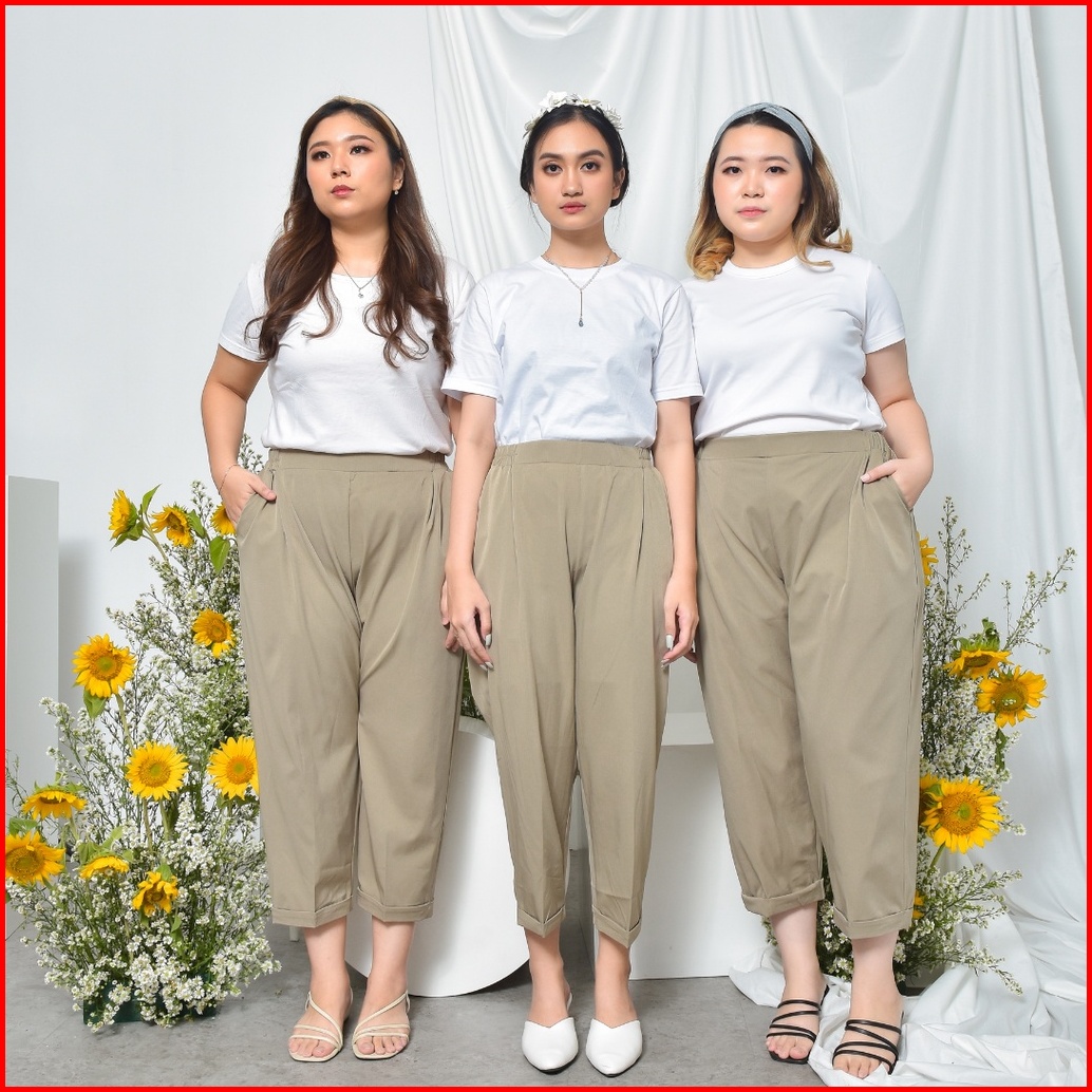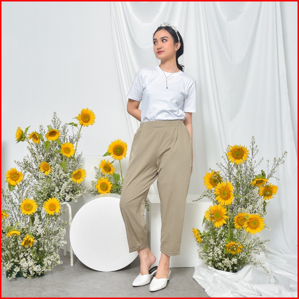 Ie.demode Karin Celana Panjang Wanita Daily Kerja Kantor Big Size Highwaist Baggy Ankle Pants Lime
