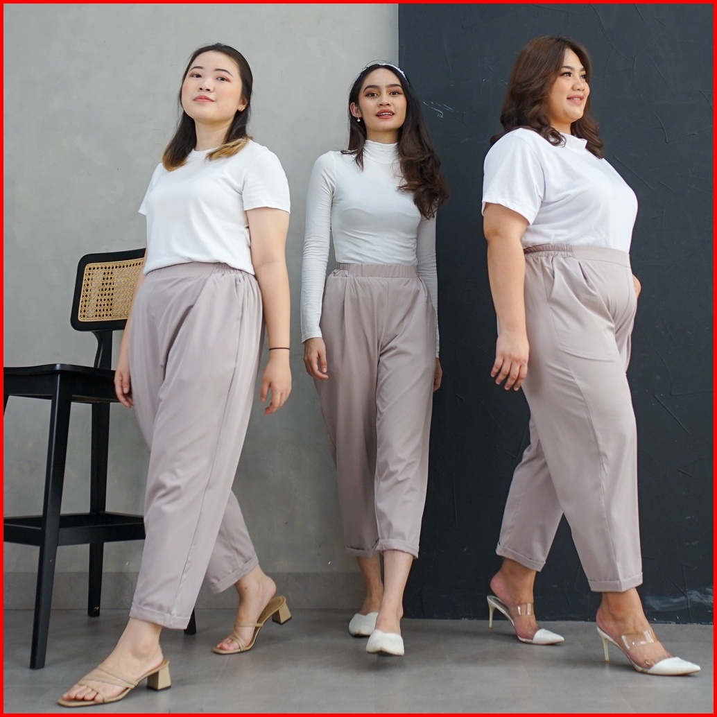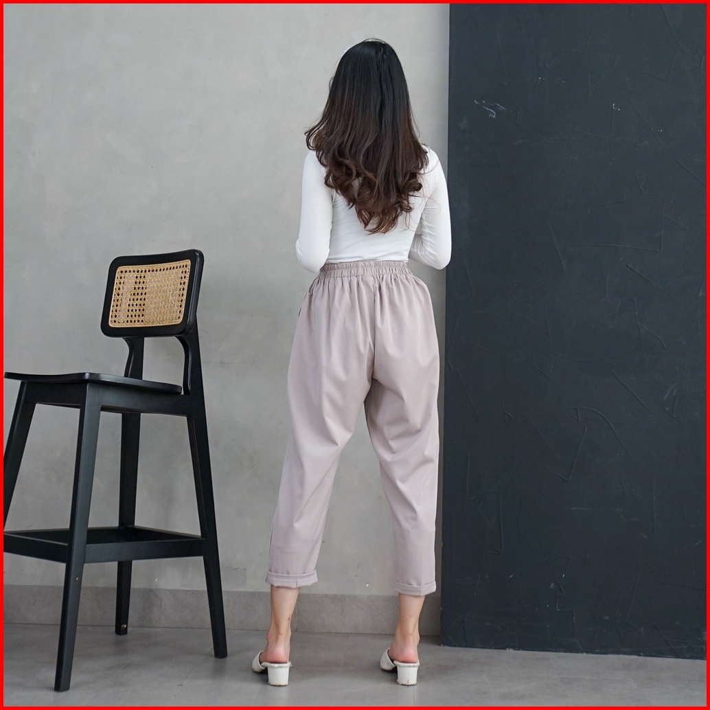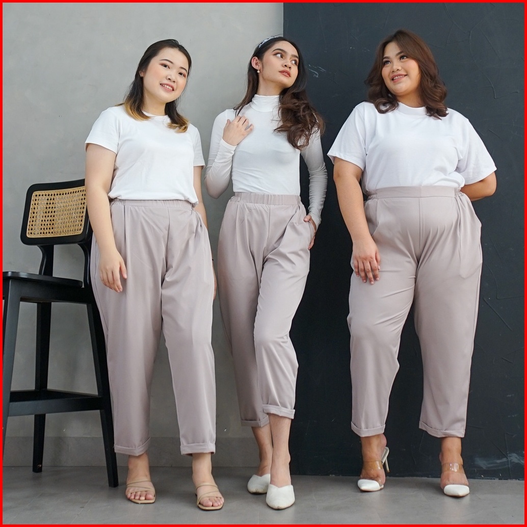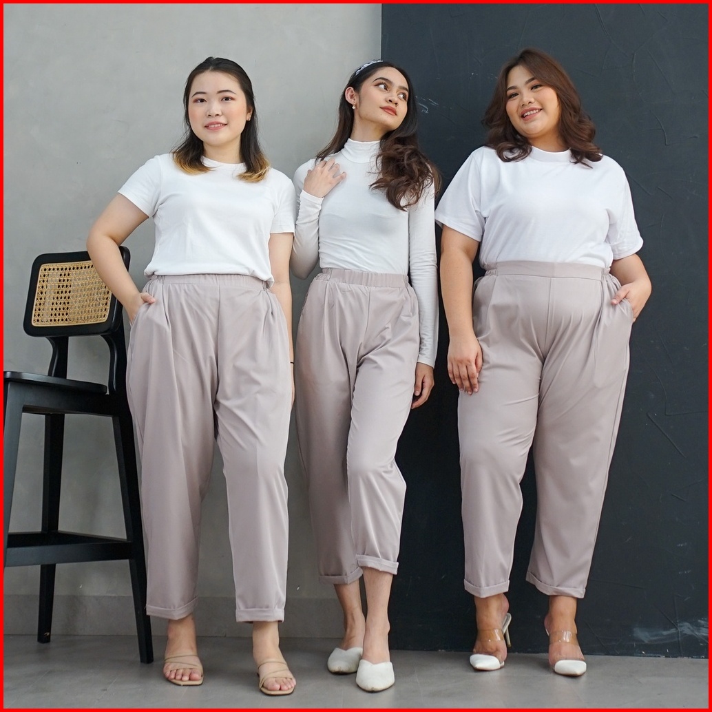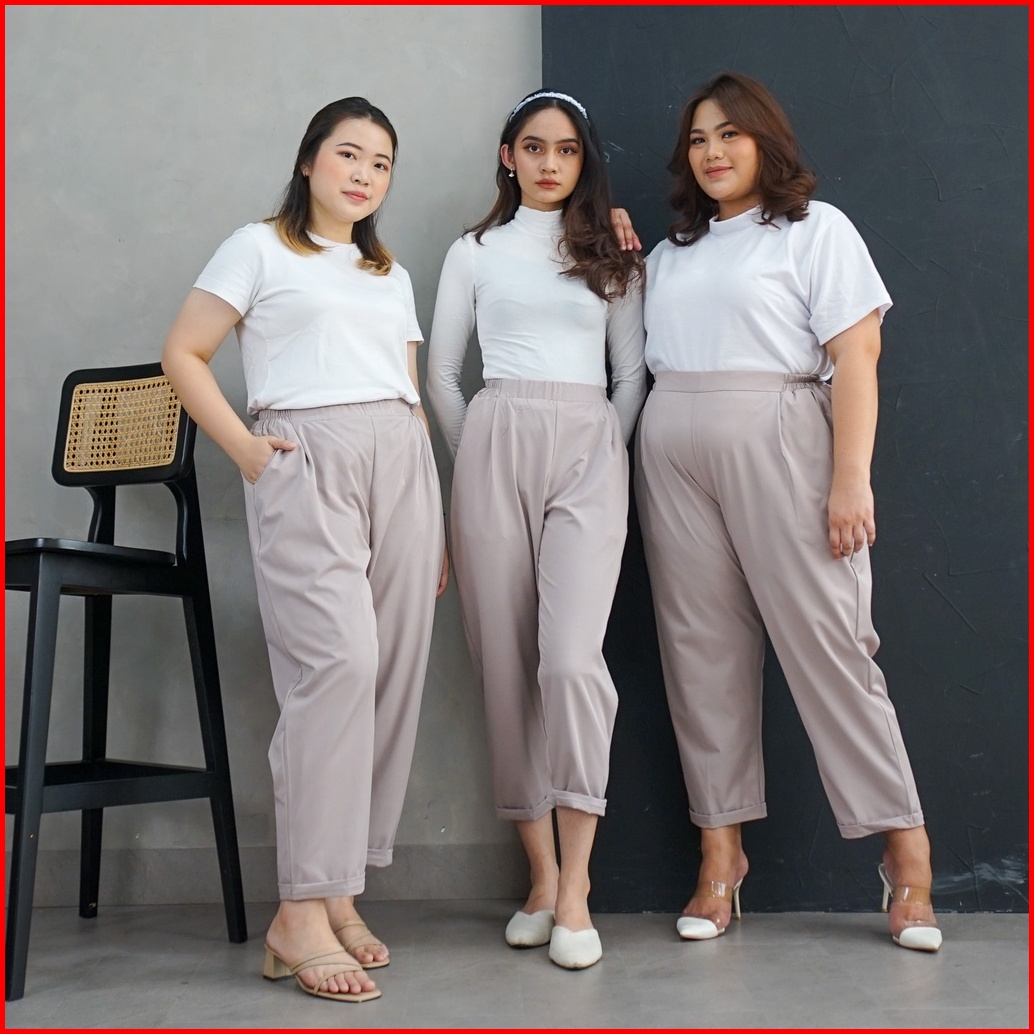 Ie.demode Karin Celana Panjang Wanita Daily Kerja Kantor Big Size Highwaist Baggy Pants Earth Gray