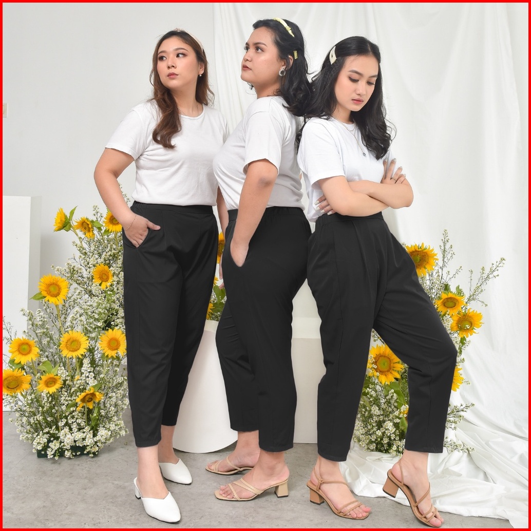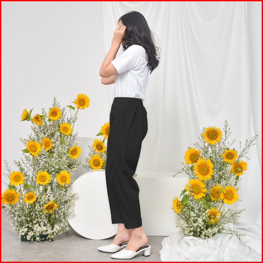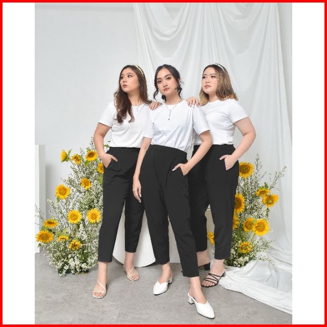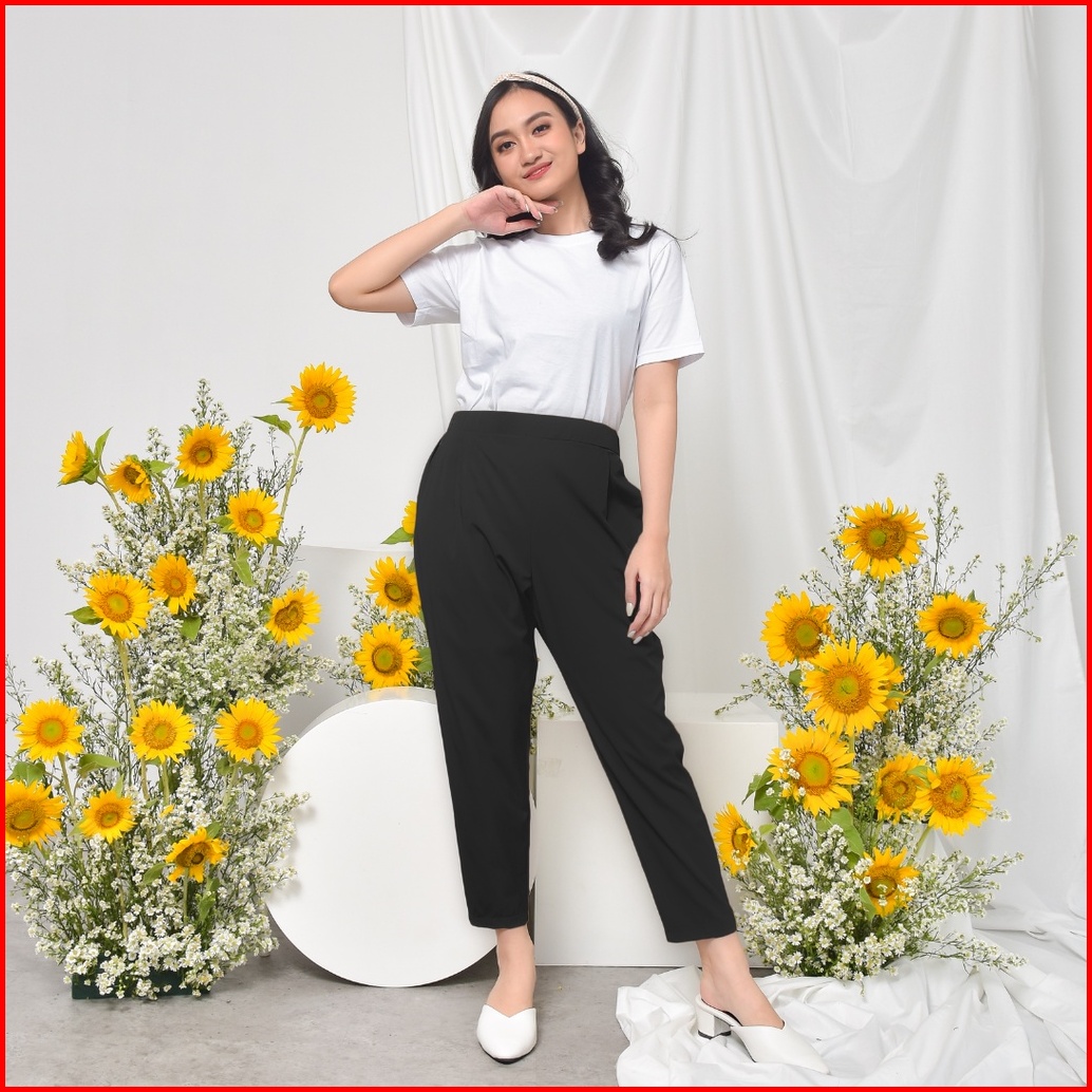 Ie.demode Miseon Celana Panjang Wanita Kerja Kantor Jumbo Slimfit Ankle Pants Bahan Allya Hitam