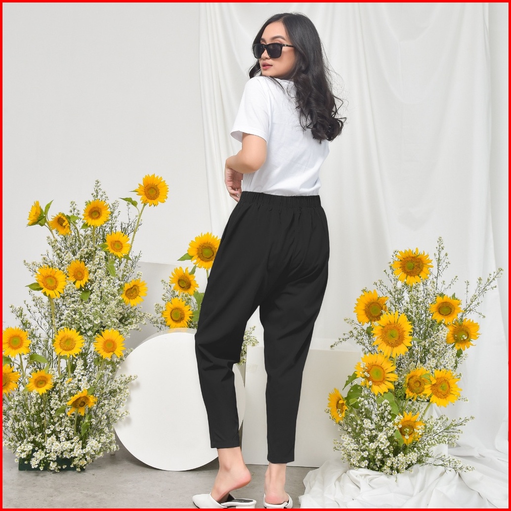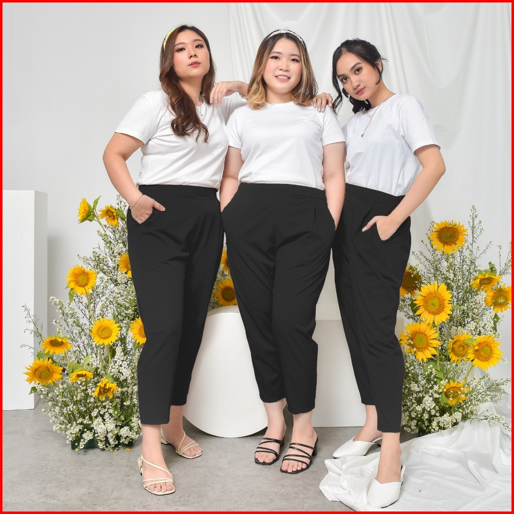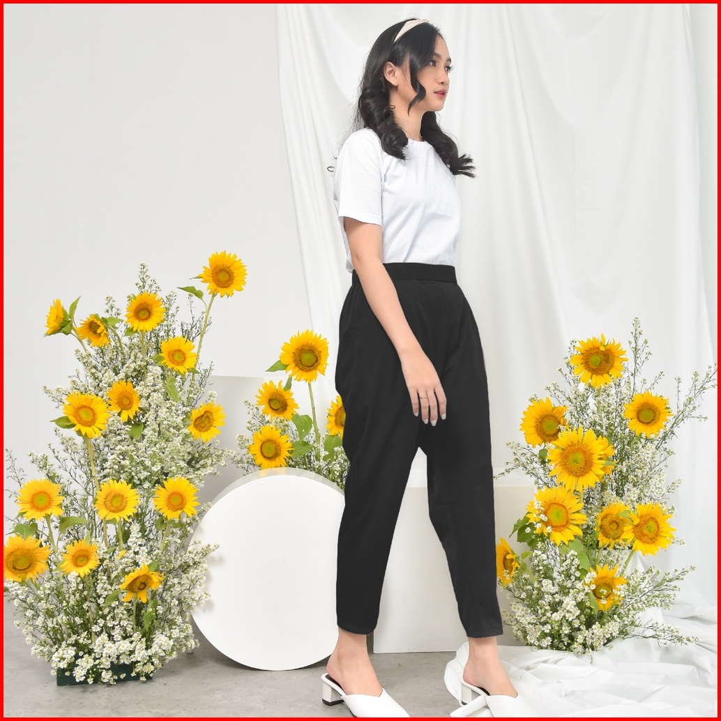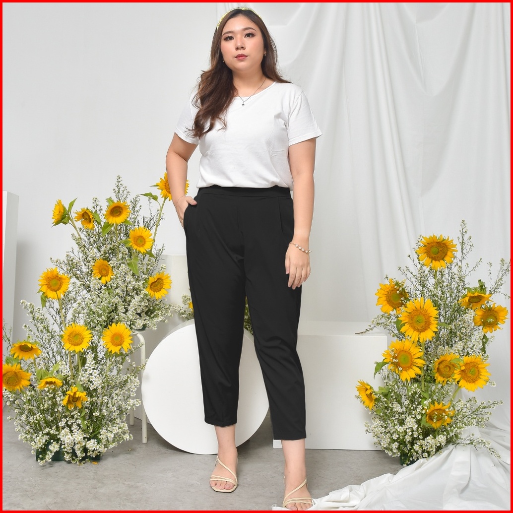 Ie.demode Miseon Celana Panjang Wanita Kerja Kantor Jumbo Slimfit Ankle Pants Bahan Allya Hitam