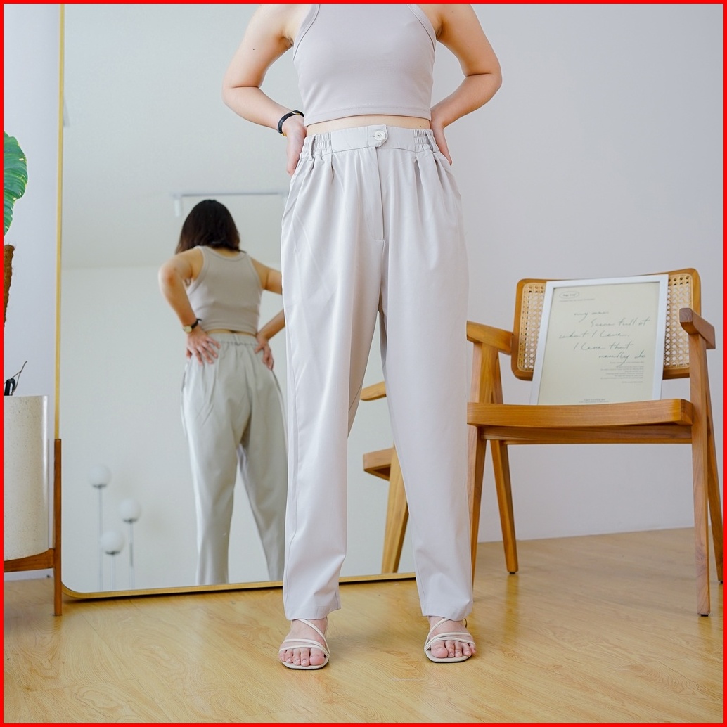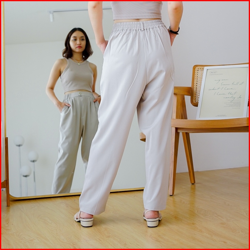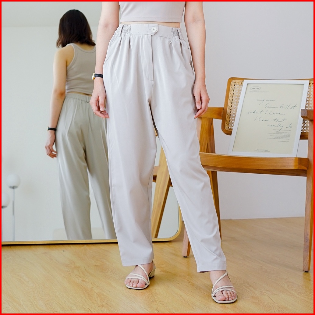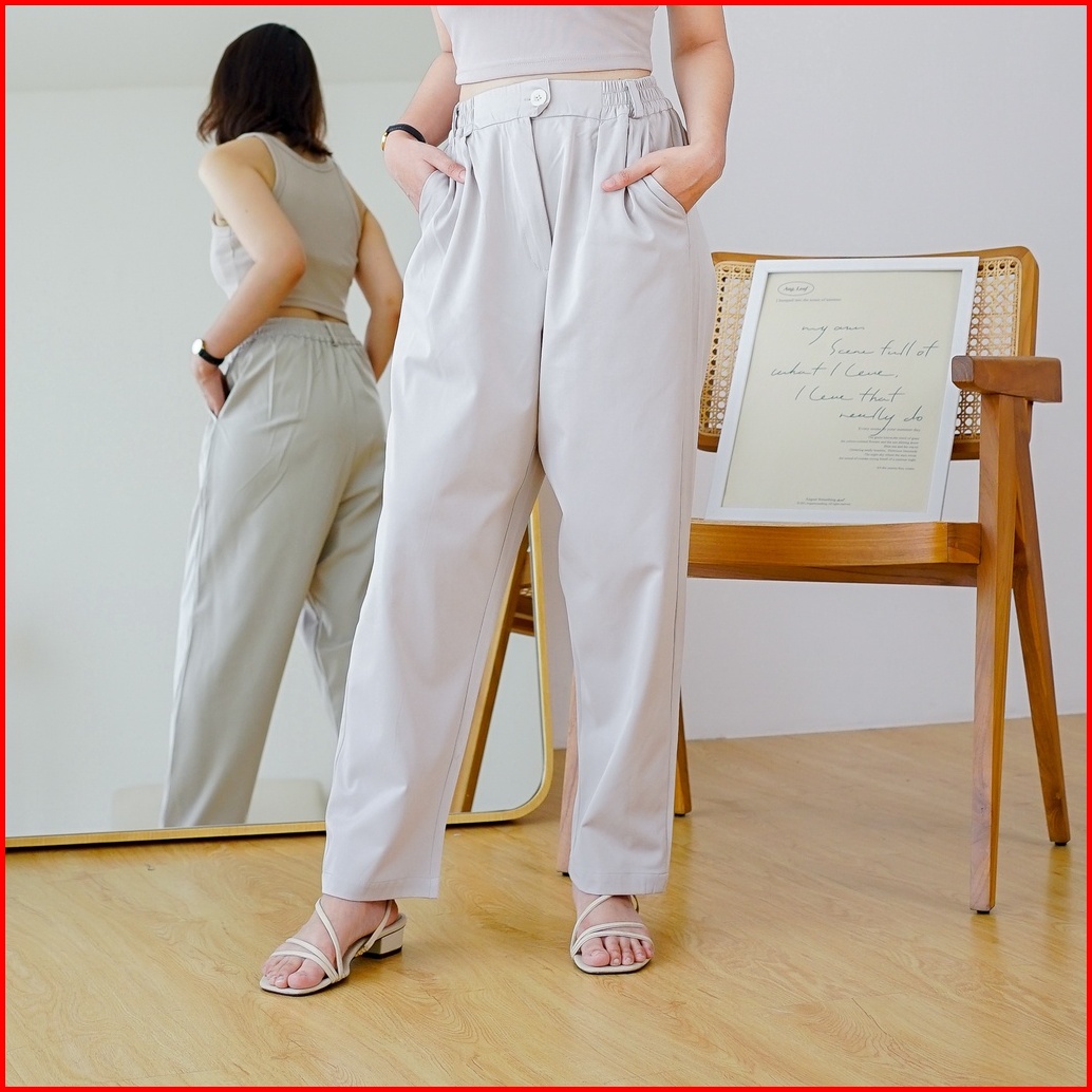 Ie.demode Goeun Celana Panjang Wanita Kerja Kantor Jumbo Big Size Overlong Pants Bahan Allya Oat