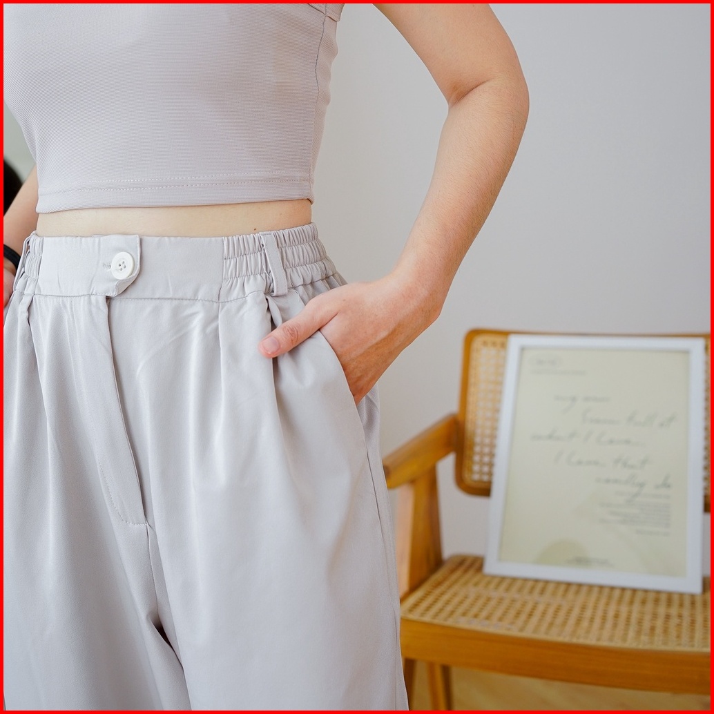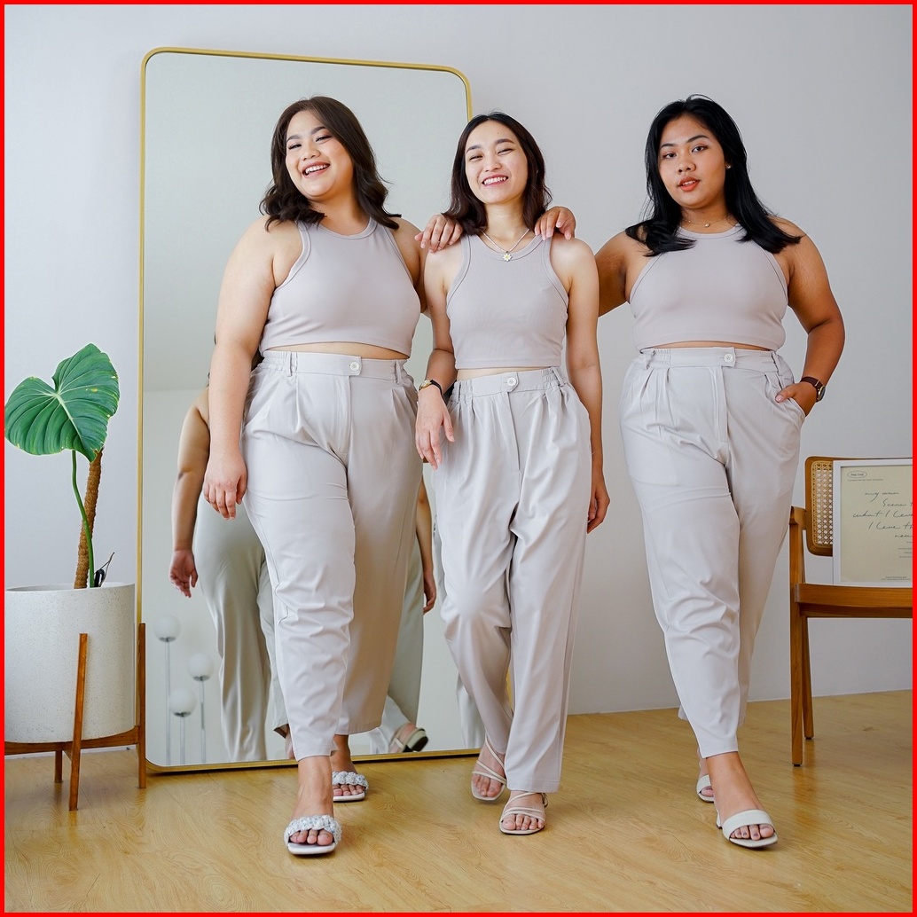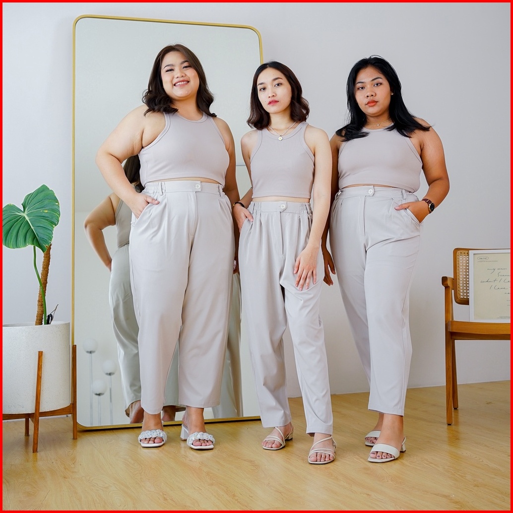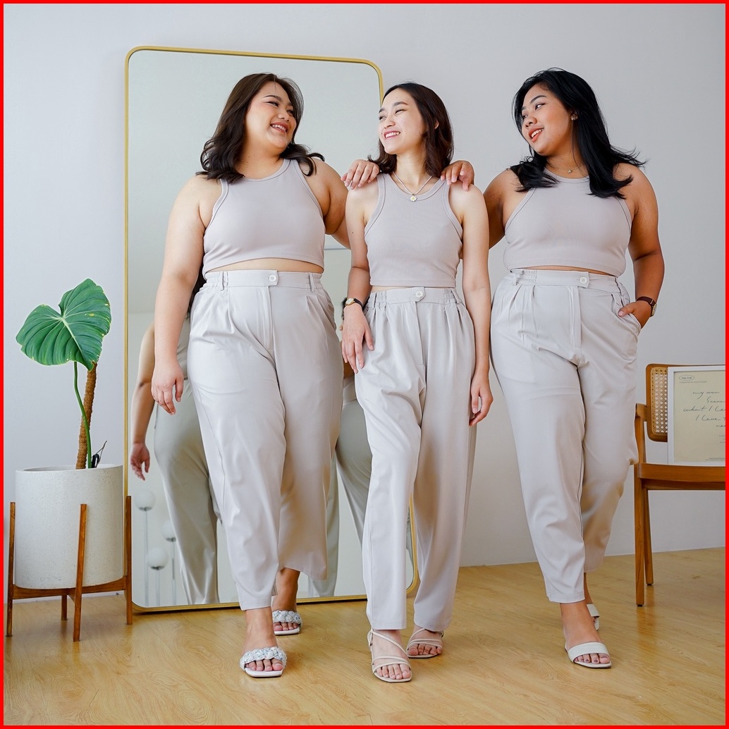 Ie.demode Goeun Celana Panjang Wanita Kerja Kantor Jumbo Big Size Overlong Pants Bahan Allya Oat