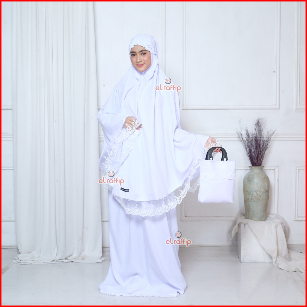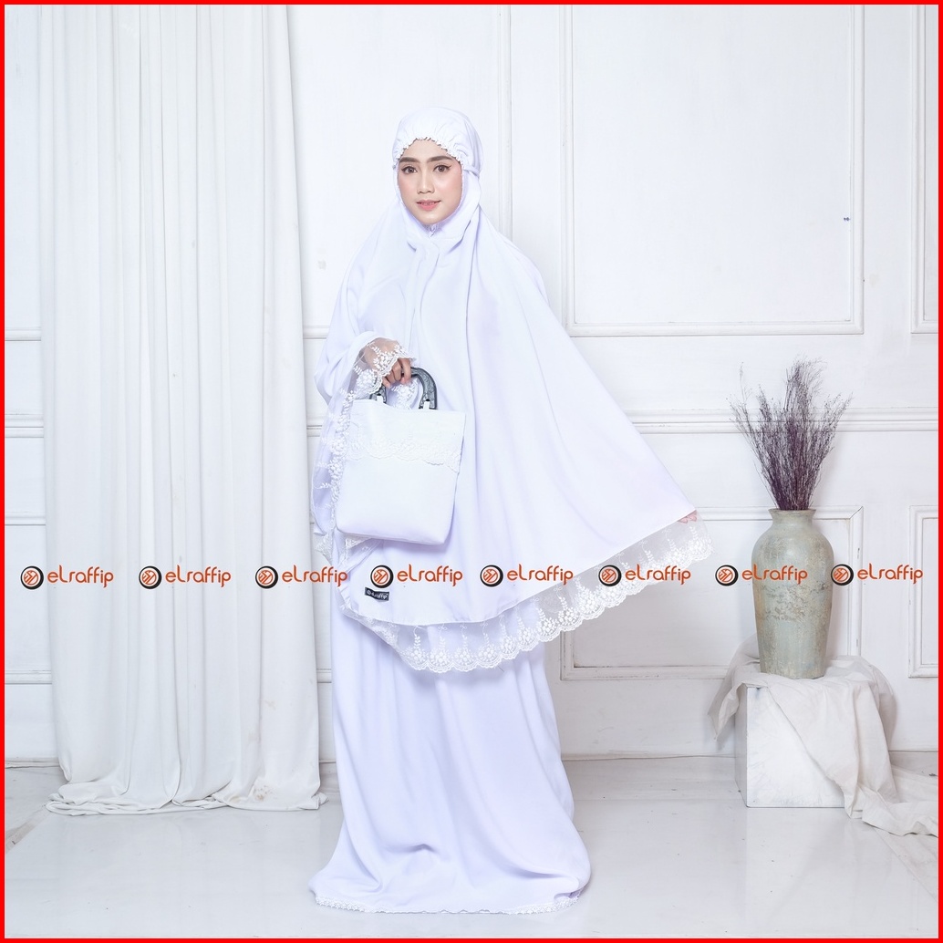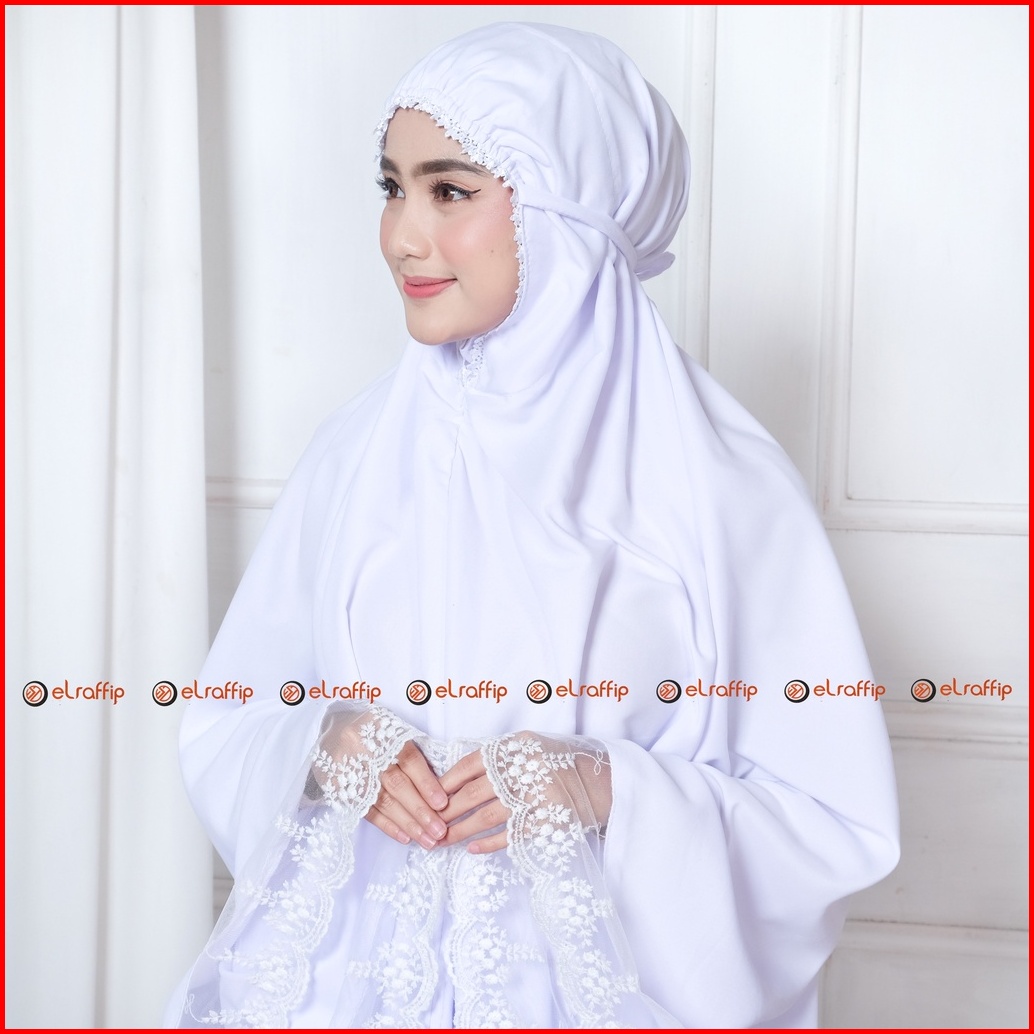 Elraffip-mukena Dewasa Umroh Dan Haji Katun Renda Bordir Tile