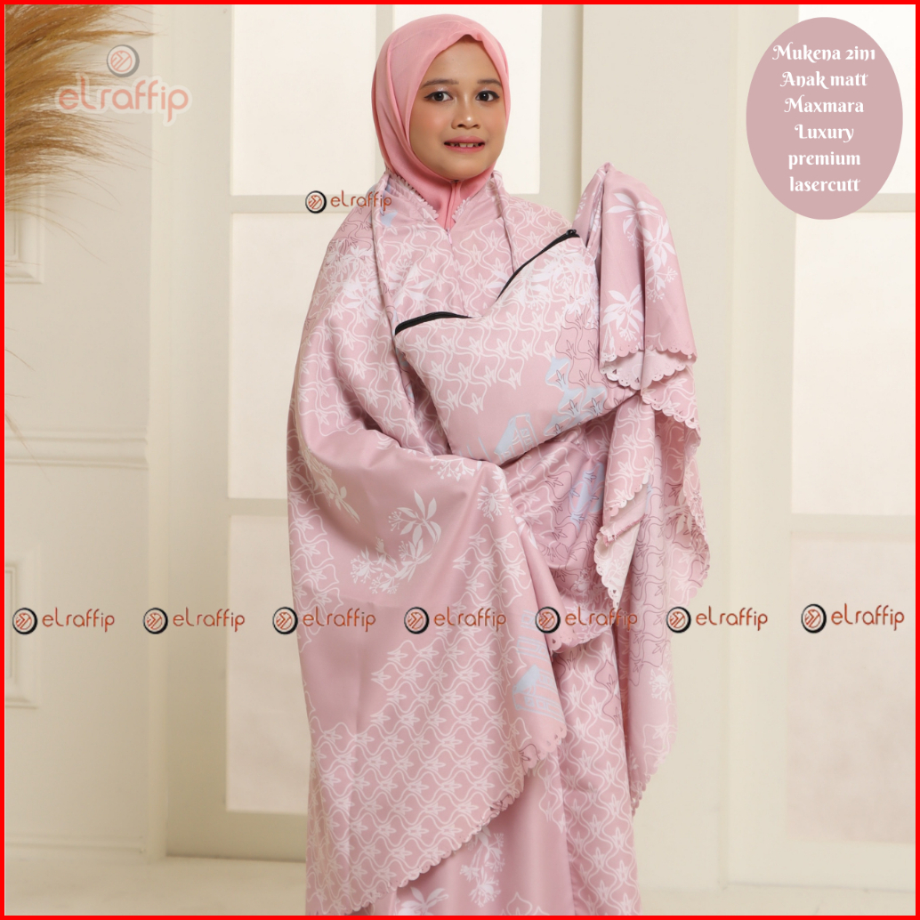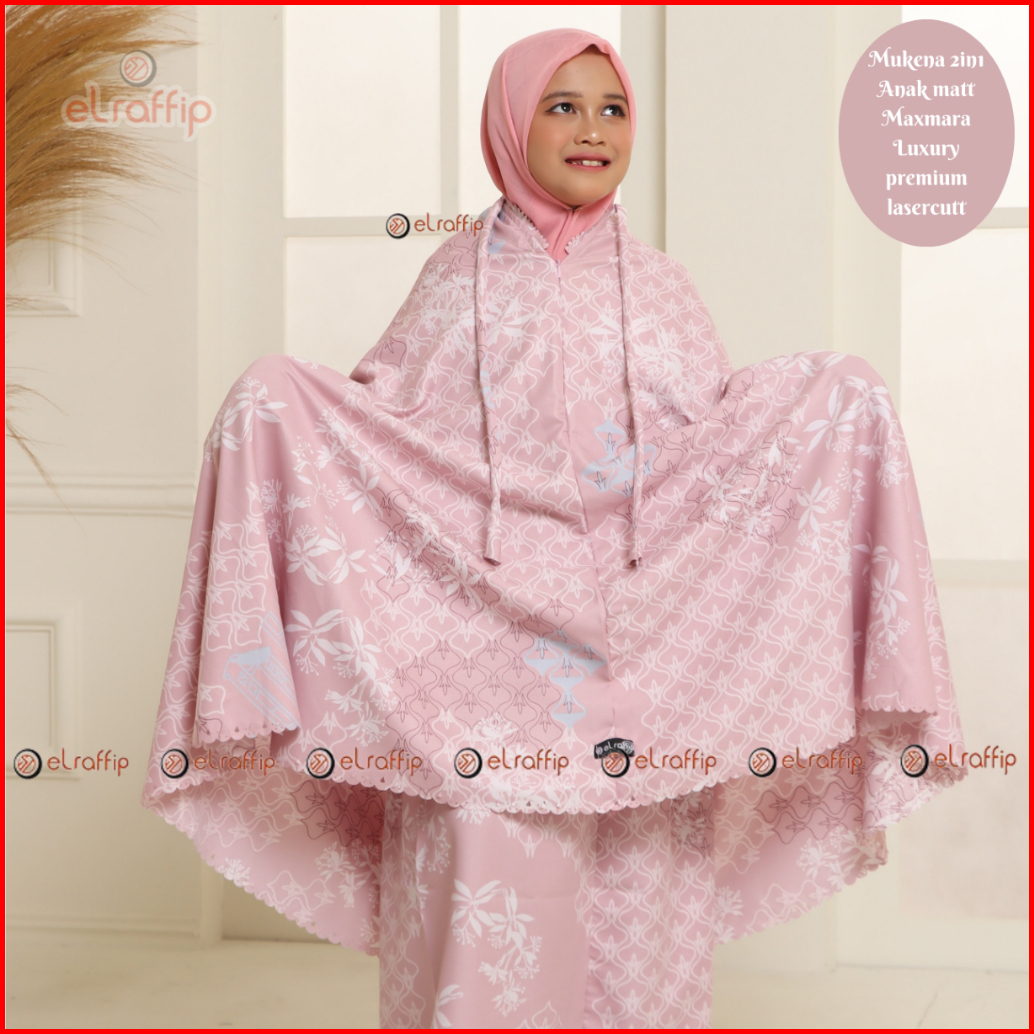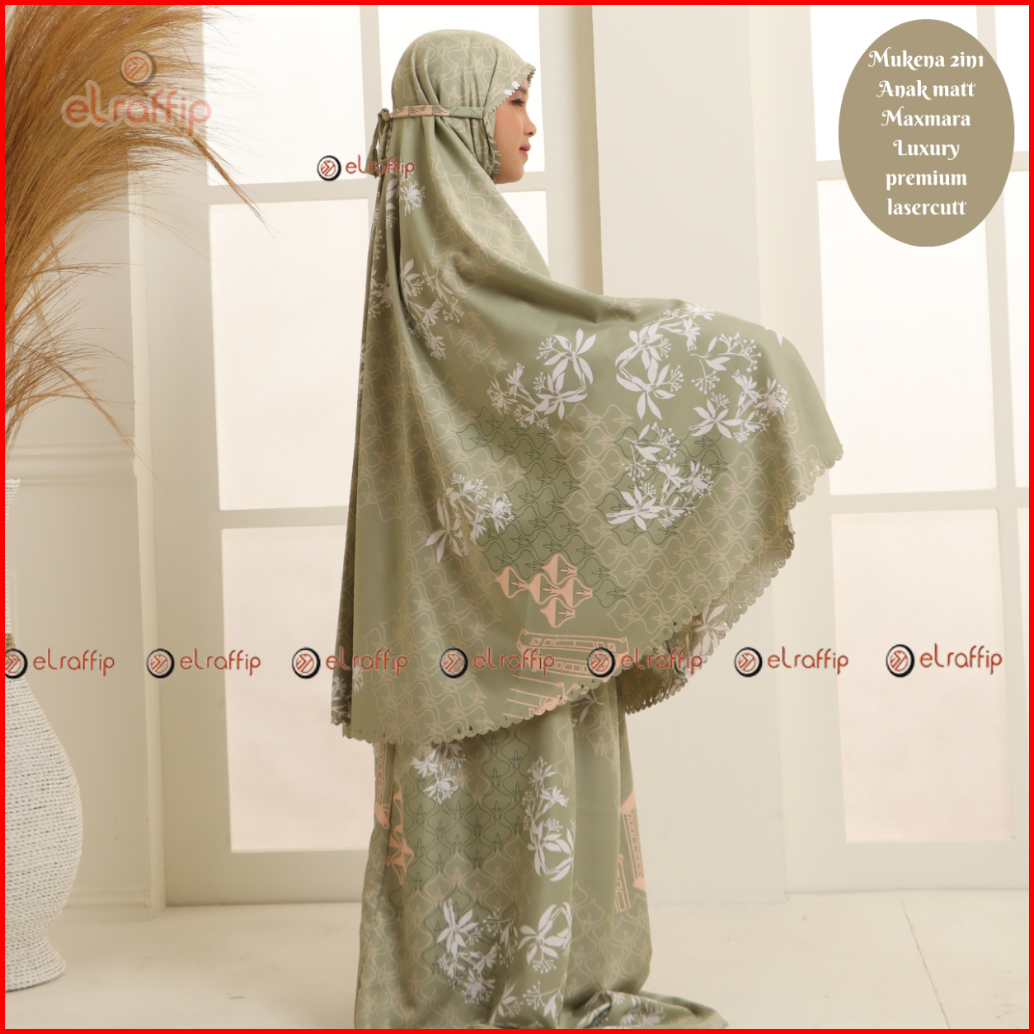 Elraffip-mukena Anak 2in1 Finishing Laser Cutting Bahan Satin Luxury Motif Free Sejadah