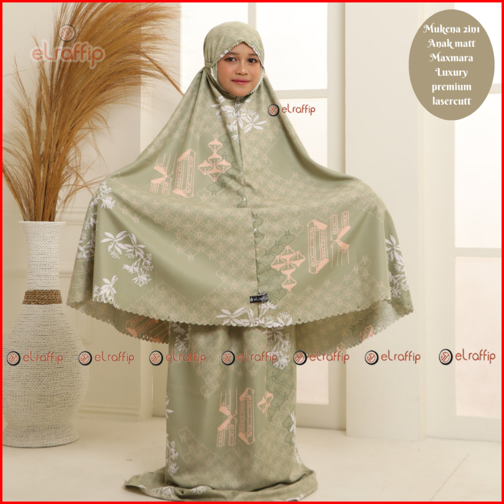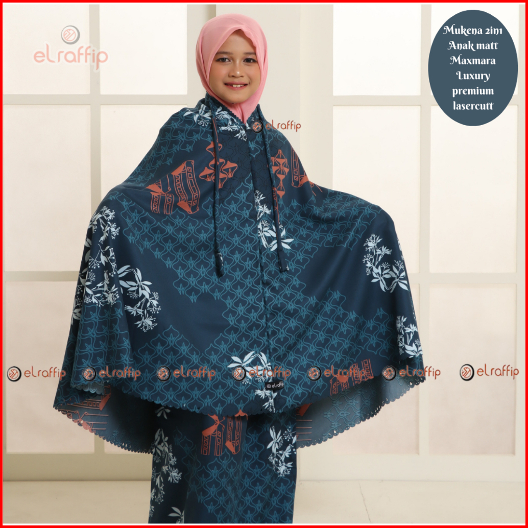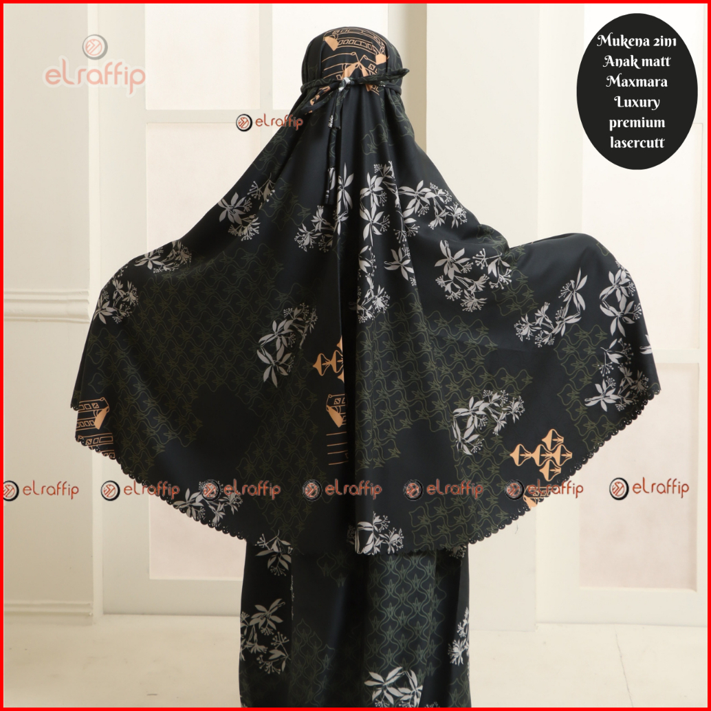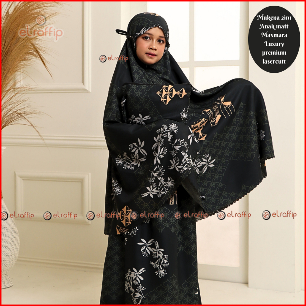 Elraffip-mukena Anak 2in1 Finishing Laser Cutting Bahan Satin Luxury Motif Free Sejadah