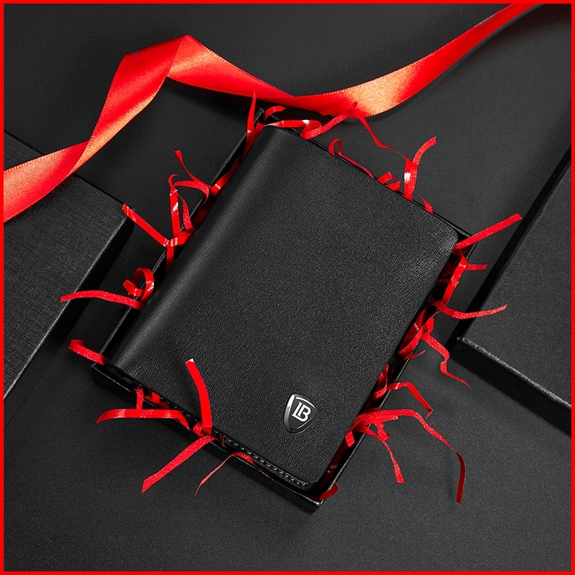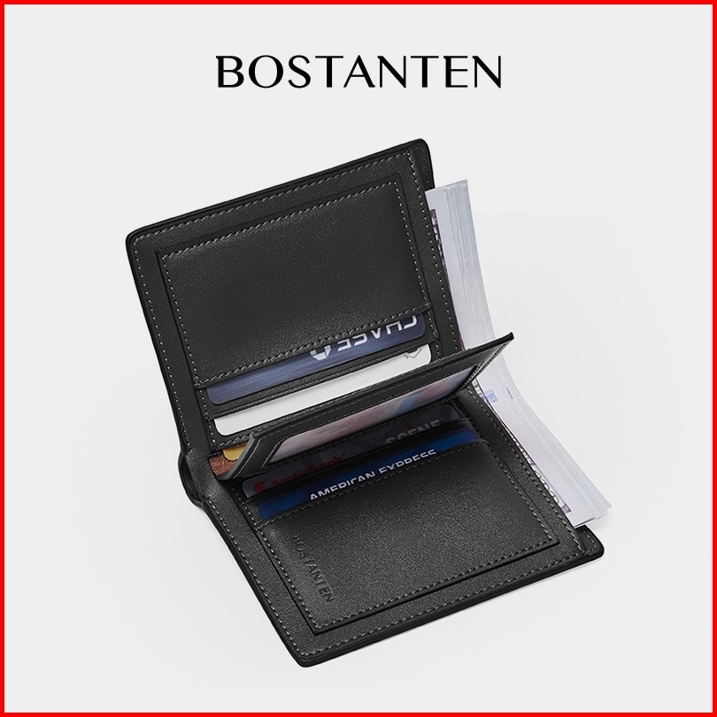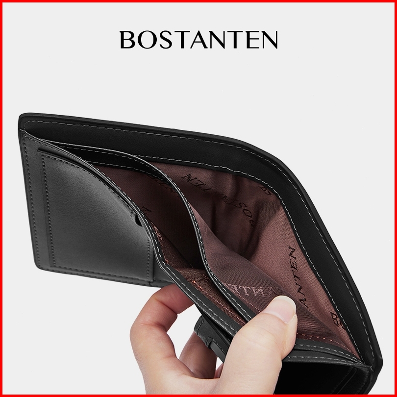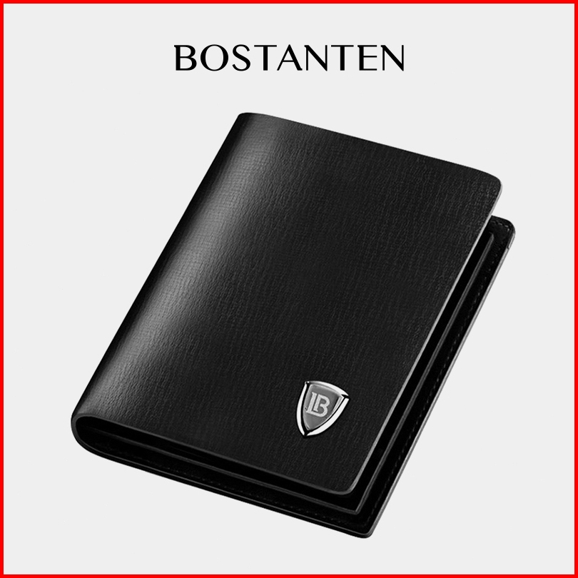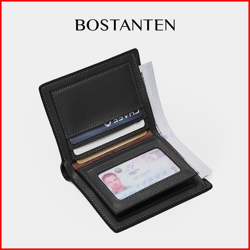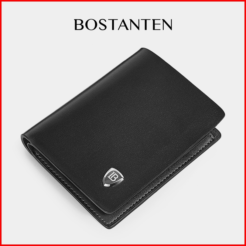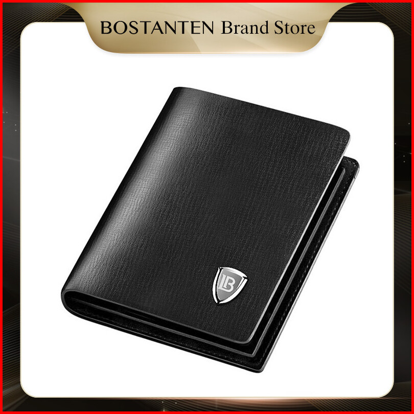 Bostanten Dompet Pria Bahan Kulit Sapi Asli Model Lipat Pendek Hitam Coklat