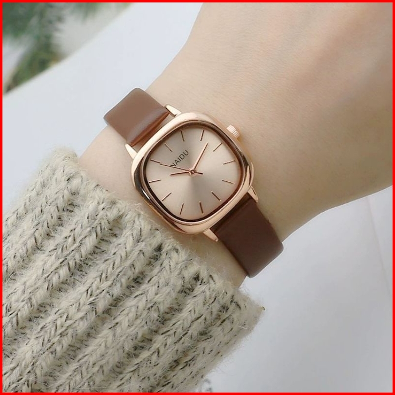 Barbee Jam Tangan Wanita Analog Naidu Kulit Strap Quatrz Gaya Retro Korea 73721