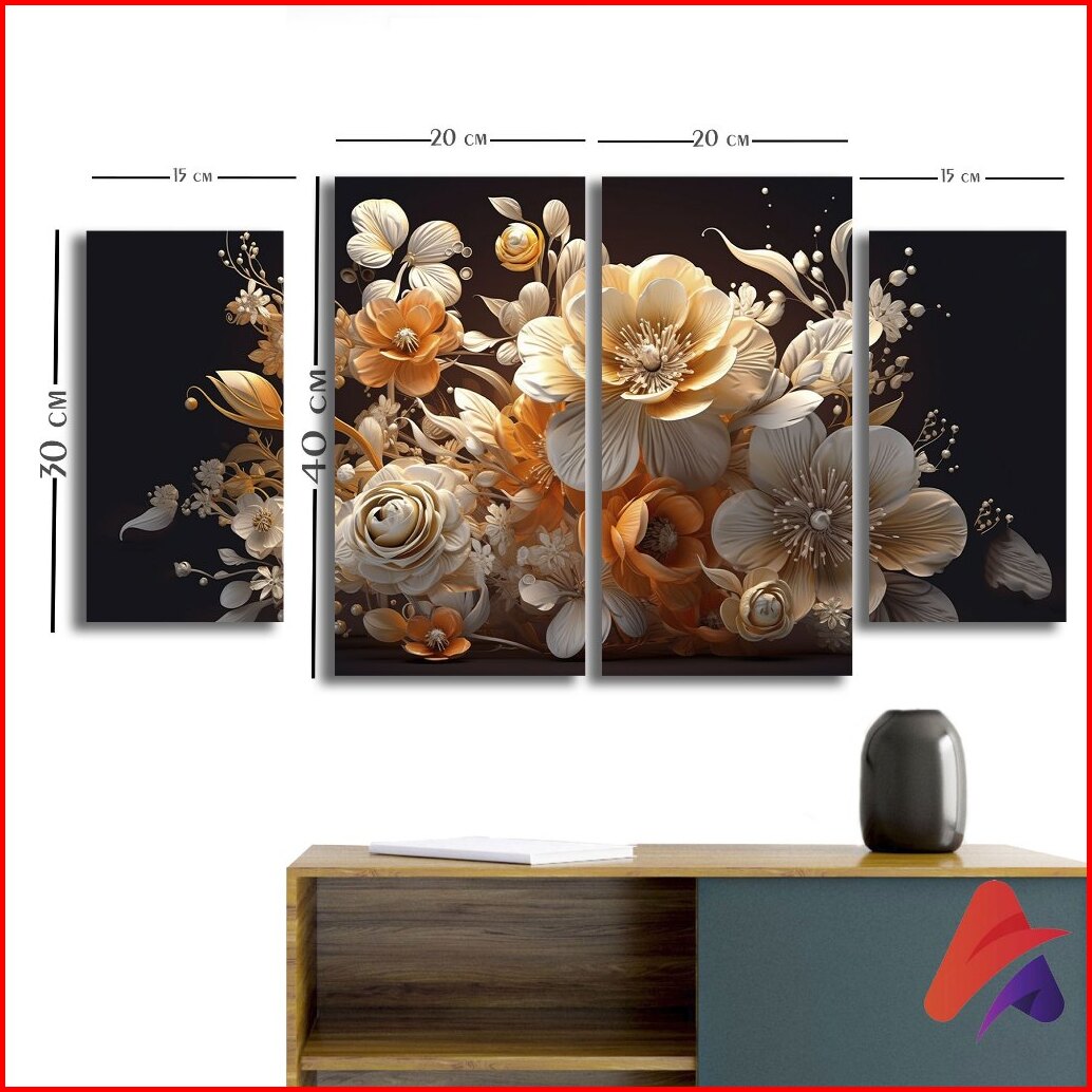 Hiasan Dinding Set Bunga Abstrak Bouquet Flowers Isi 4 Dekorasi Rumah Wall Decor Pajangan Set Bunga