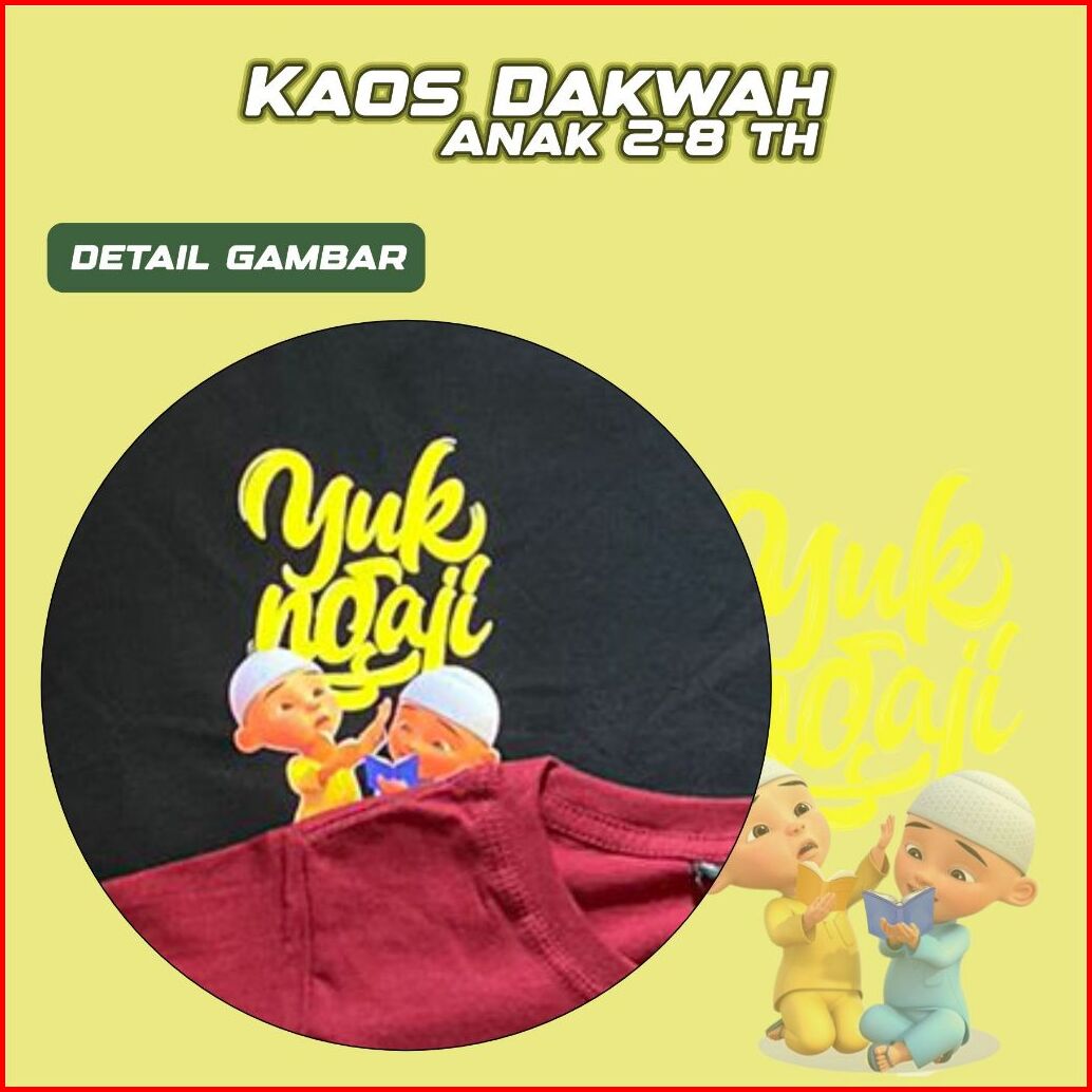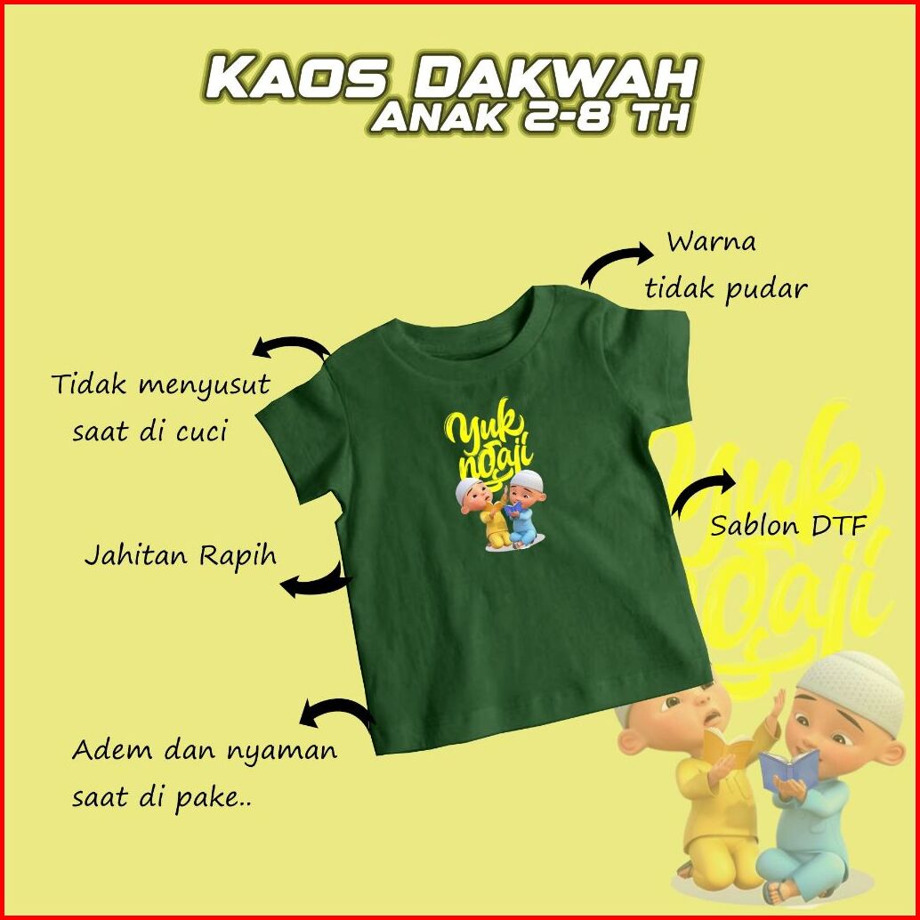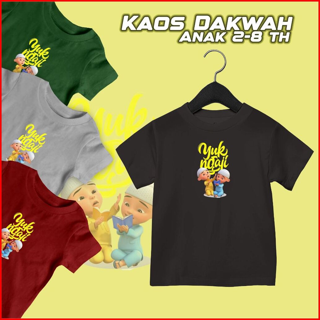 Kaos Dakwah Anak Laki Laki Muslim Islami Karakter Upin Ipin Font Yuk Ngaji 2-8 Tahun Katun Combed