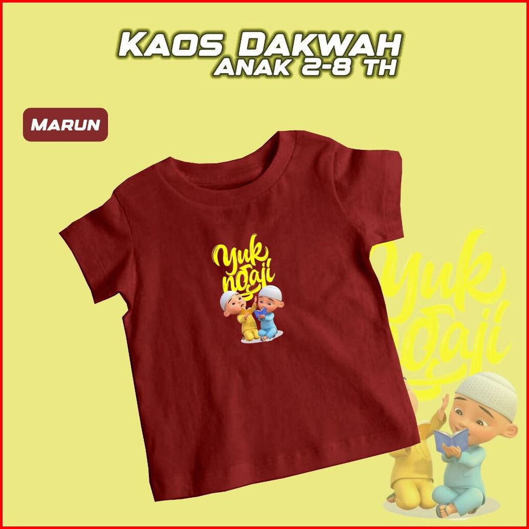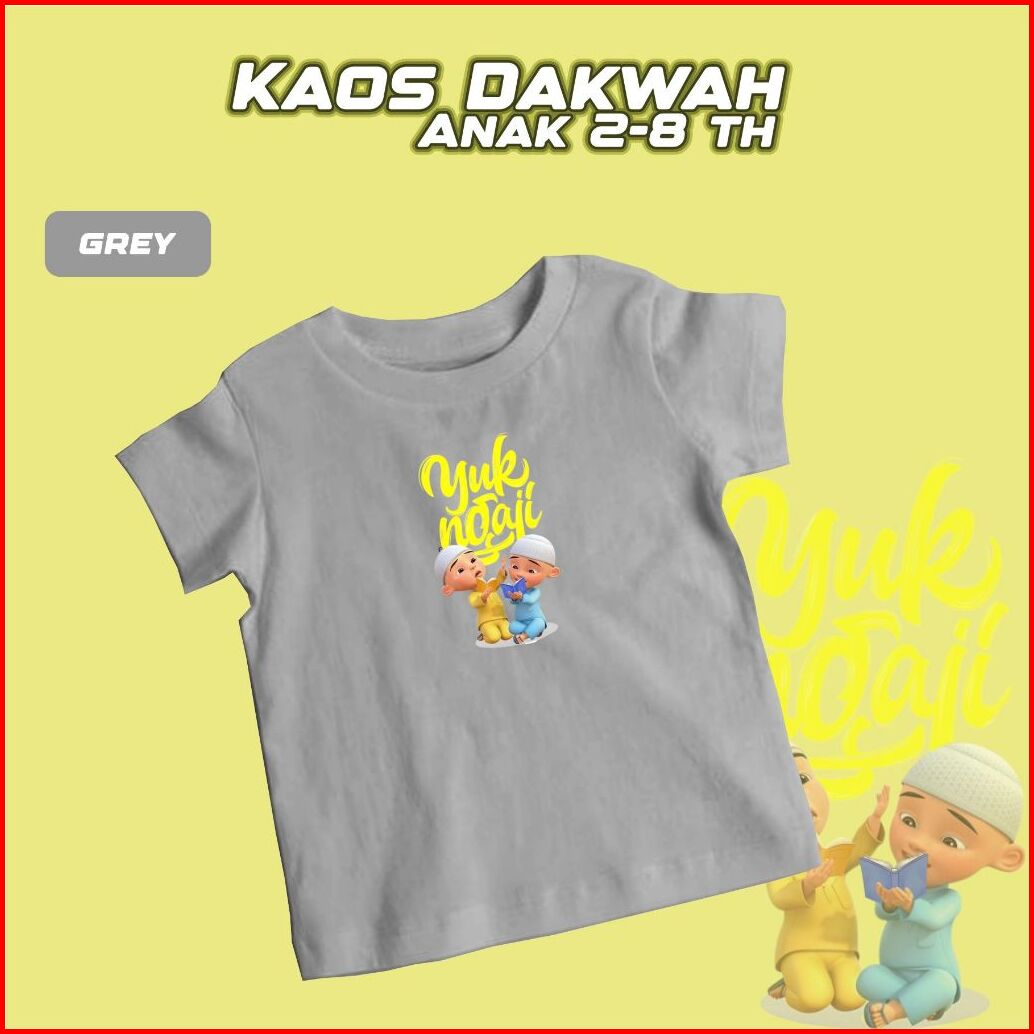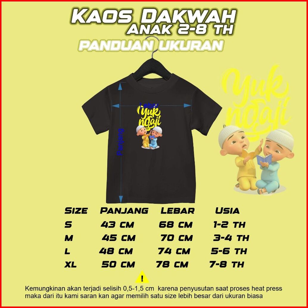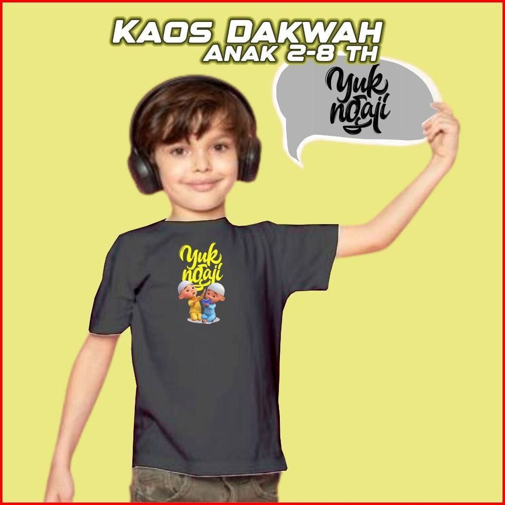 Kaos Dakwah Anak Laki Laki Muslim Islami Karakter Upin Ipin Font Yuk Ngaji 2-8 Tahun Katun Combed
